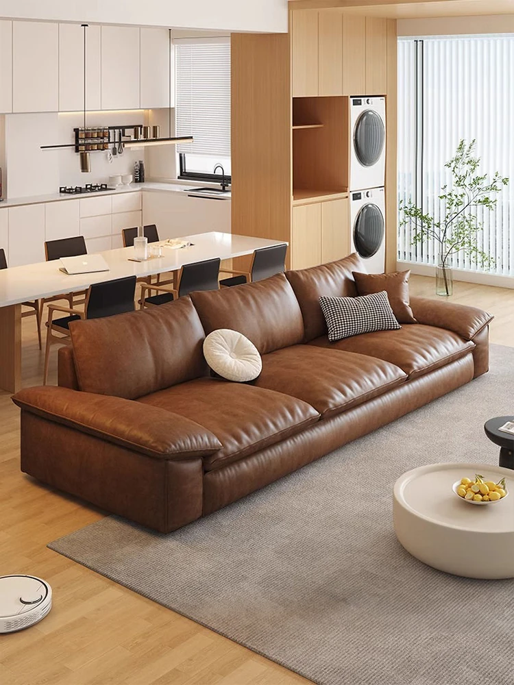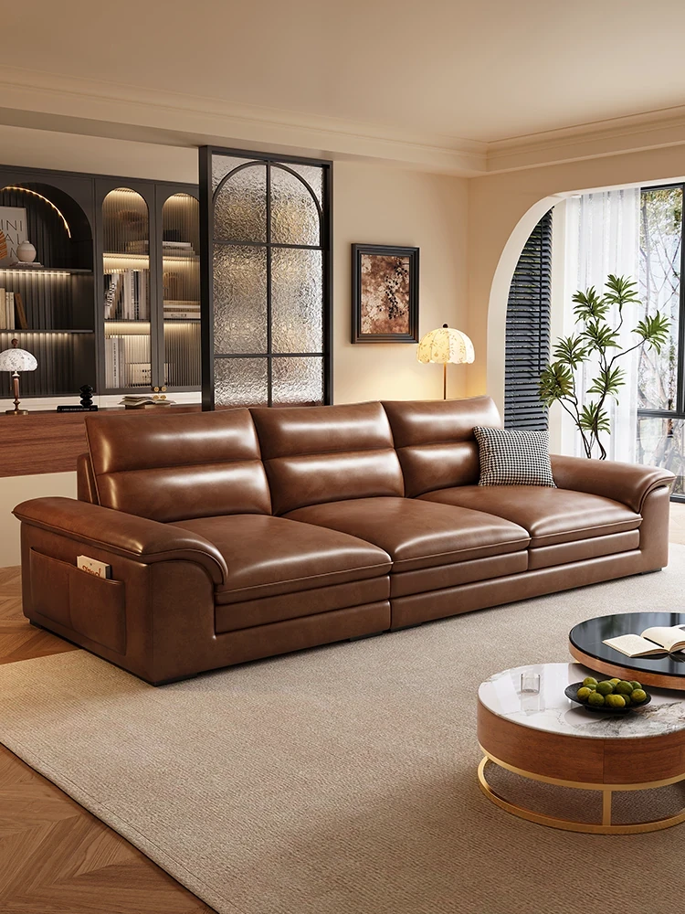Vintage Oil Wax Genuine Leather Sofa - 2025 New Light Luxury Design for Small Living Spaces - Comfortable 3-Seater and 4-Seater Options Perfect for Your Home