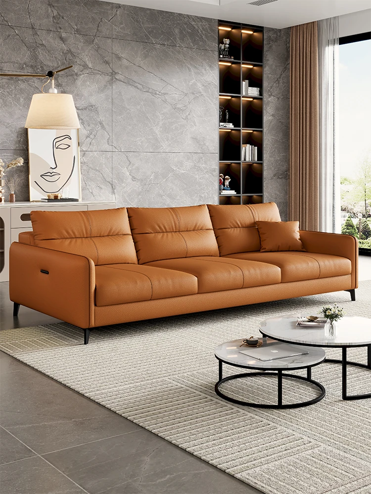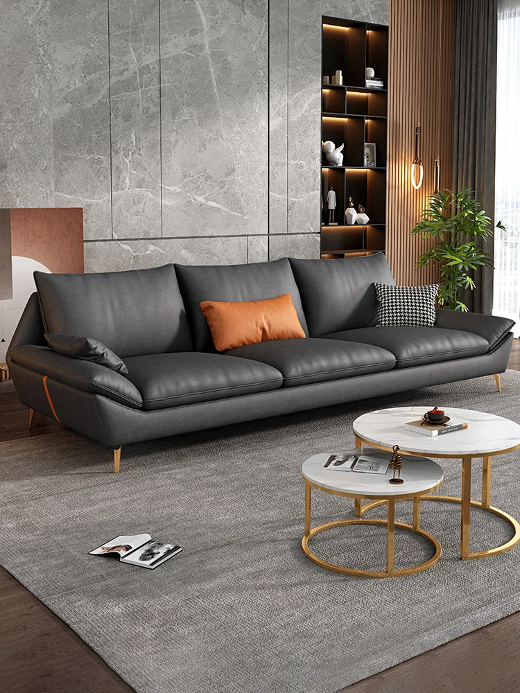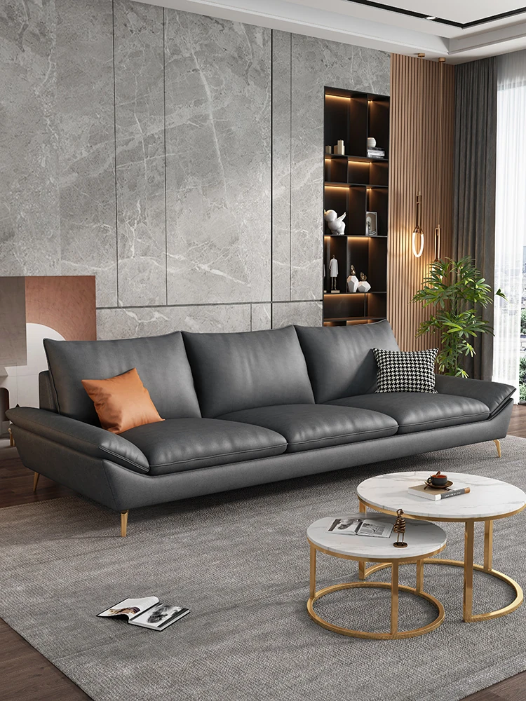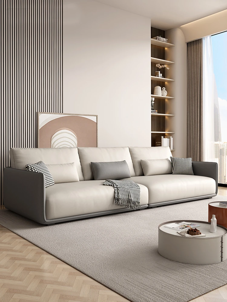Italian Minimalist Genuine Leather Sofa - Luxurious Yet Affordable, Perfect for Small Spaces. Modern and Simple Design with Scratch-Resistant Fabric for Cat Lovers. Three-Seater Comfort for Your Living Room.
