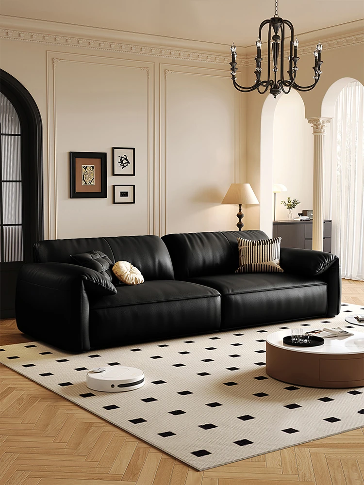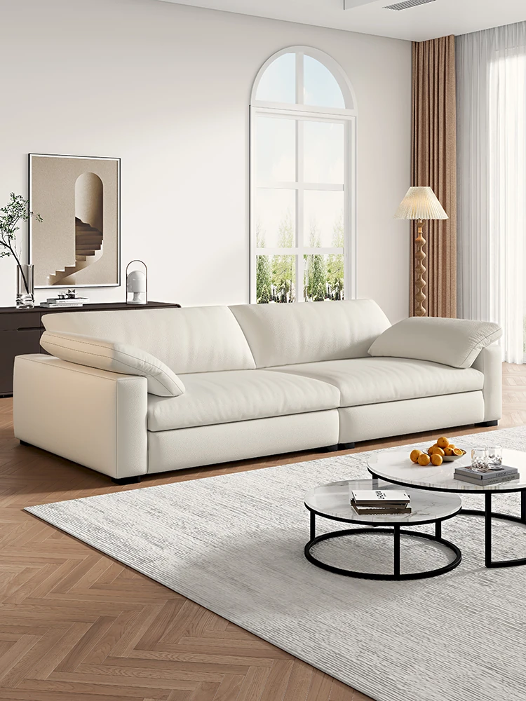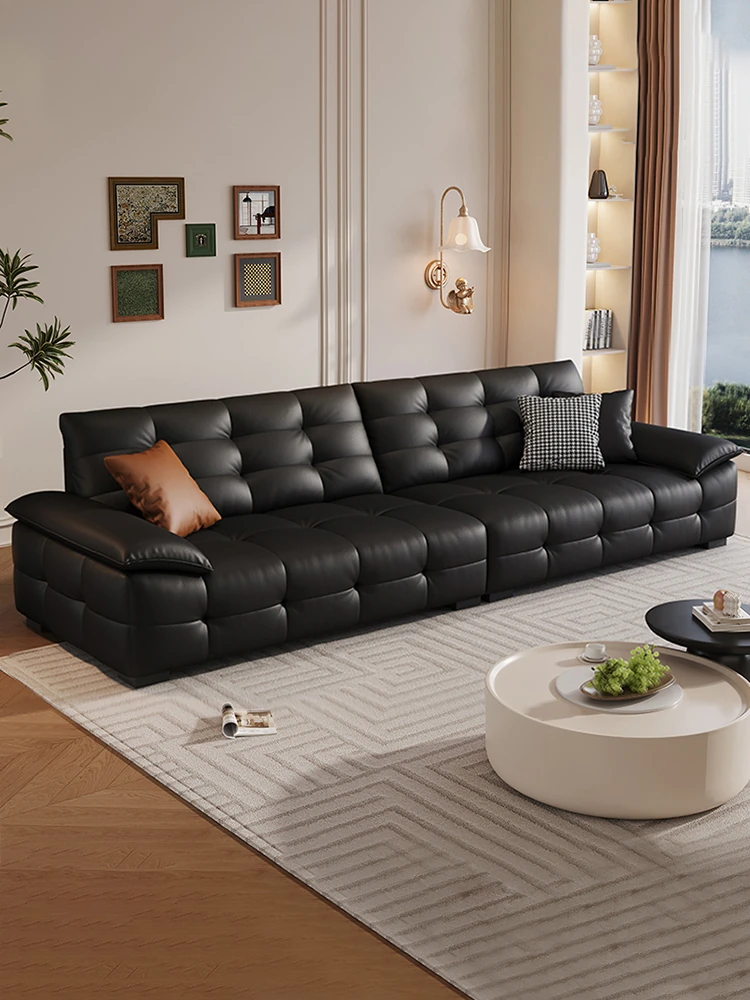 2025 New Arrival: Italian Minimalist Genuine Leather Compact Sofa - Modern Simple Design with Cat Paw Leather, Perfect for Small Living Rooms, 3-Seater Style