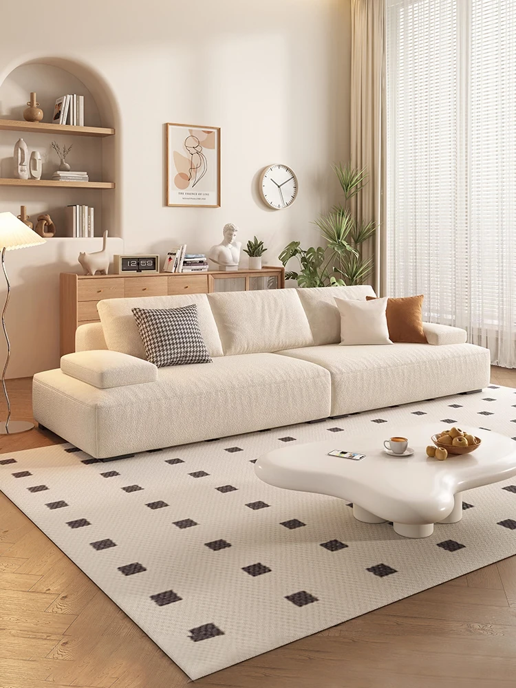 French Creamy Fabric Sofa - Modern Minimalist Design for Small Living Rooms, Perfect for 3-4 People, Luxurious Chaise Lounge for Home Elegance