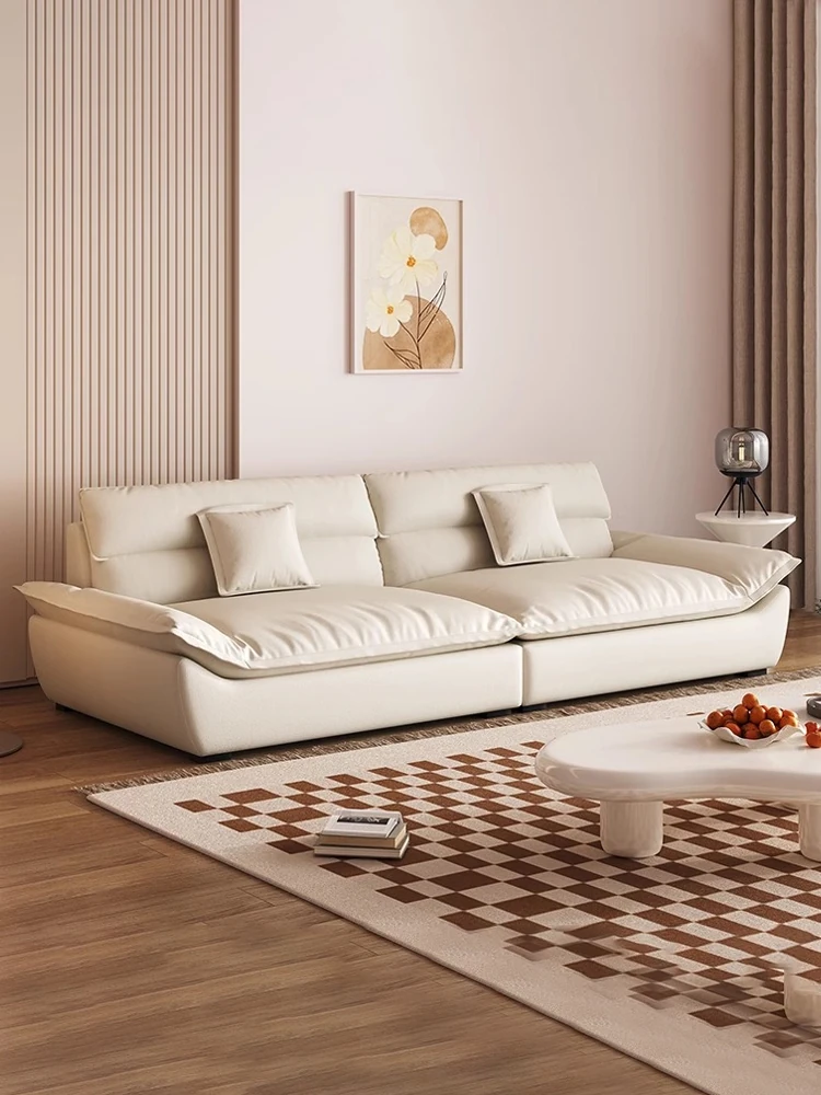 French Cream Style Luxury Tech Fabric Sofa for Small Living Rooms - Modern Minimalist Three-Seater with Cat Scratch Resistant Upholstery