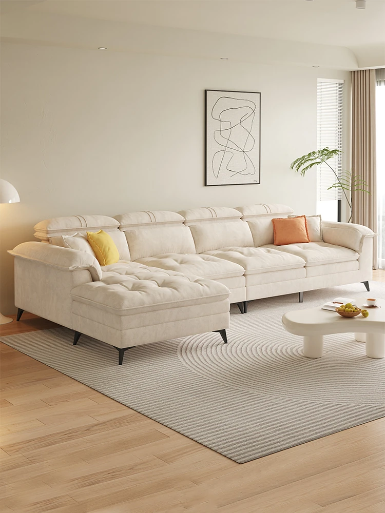 Creamy Modern Minimalist Small Apartment Sofa - Luxurious Three-Seat Cat Paw Fabric Couch with Chaise Lounge for Your Living Room
