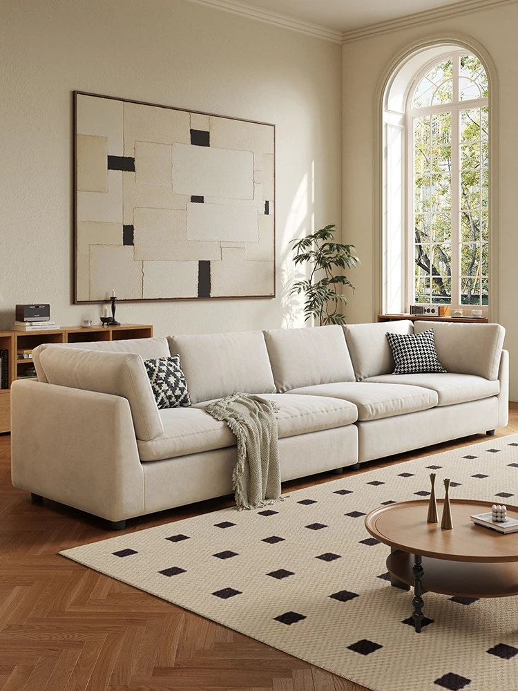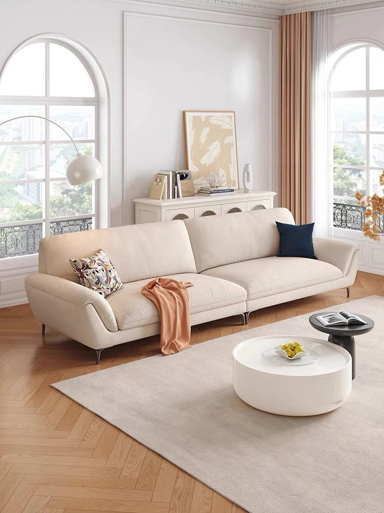 フランス風クリームテクスチャーの布製ソファー - 小型リビングに最適なモダンでシンプルなデザイン、軽やかなラグジュアリー感。3~4人用の貴族スタイル、快適さとスタイルを兼ね備えた一品です。