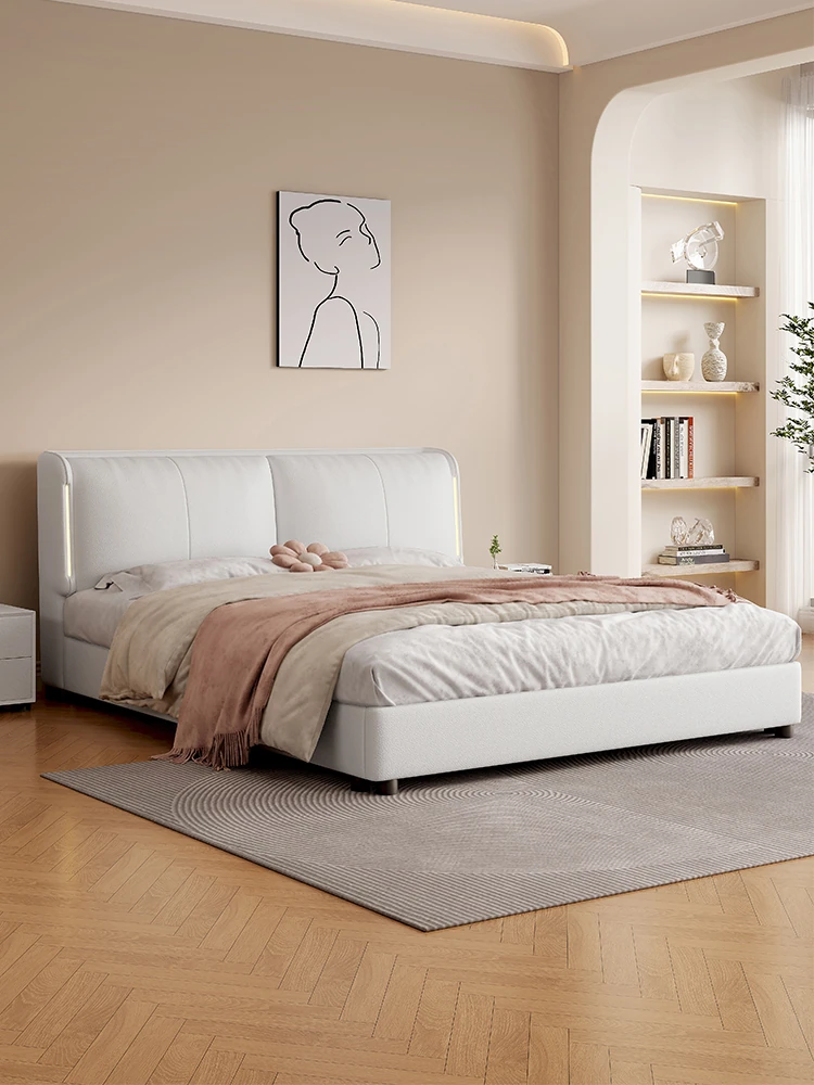 2025 New Trendy Luxury Leather Bed for Couples - Modern Minimalist Design, Creamy Soft Upholstered Double Bed for Master Bedroom, High-End and Elegant