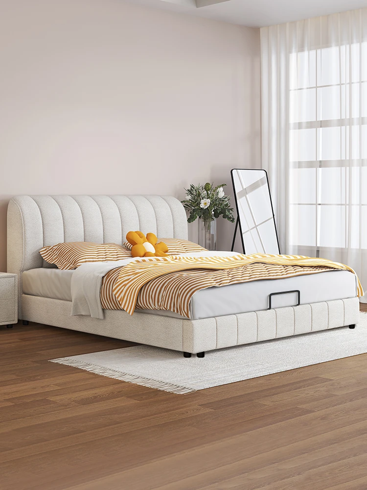 Luxury Cream Fabric Bed - Modern Minimalist Double Bed with Storage for Master Bedroom, Available in 1.5m and 1.8m Sizes, Perfect for Stylish Living Spaces