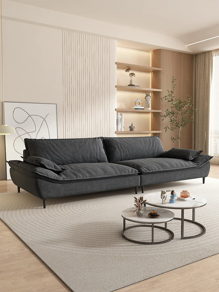 Italian Minimalist Black Sugar Cloud Sofa - Luxurious Fabric Couch for Small Living Rooms, 2025 New Arrival with Genuine Leather Trimmings. Perfect Blend of Elegance and Comfort!