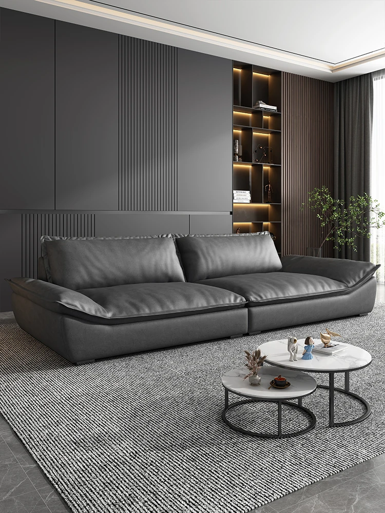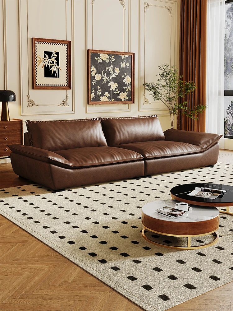 2025 New Italian Minimalist Black Top-Grain Leather Vintage Sofa - Luxurious Chic Living Room Set for Villas