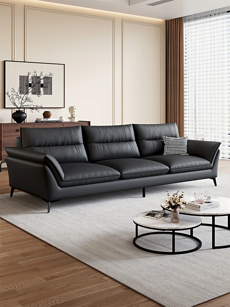 Italian Minimalist 2025 New Large Black Bear Genuine Leather Sofa - Luxurious Straight Four-Seater for Living Rooms of All Sizes, Perfect for Modern Homes