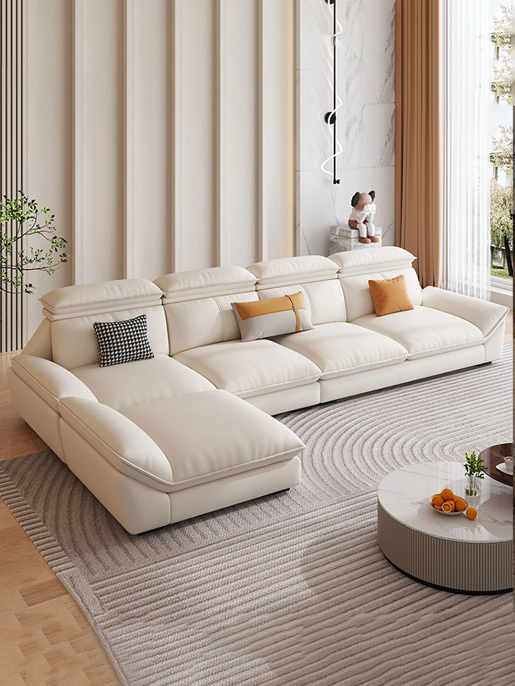 Italian Luxury Top-Grain Leather Tofu Block Sofa - Stylish and Comfortable for Living Rooms of All Sizes, 2025 New Model, Available in 4-Seat and 5-Seat Options
