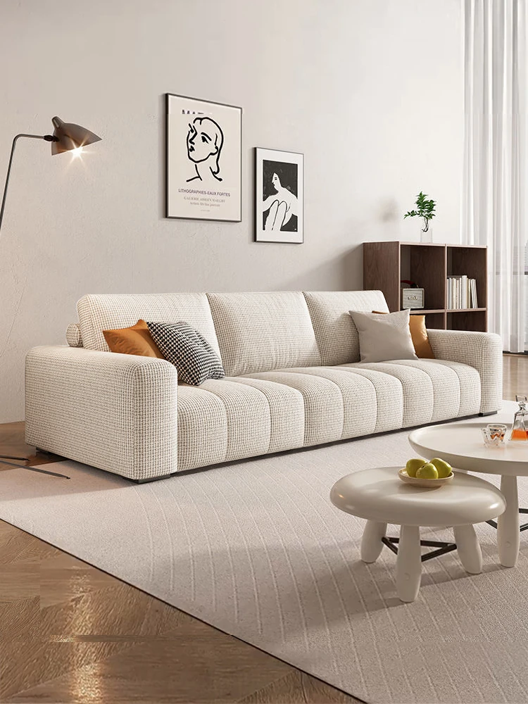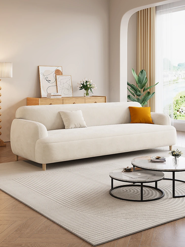 Nordic Style Cream Fabric Sofa for Small Living Rooms - Modern Minimalist Luxury Design, Straight-Line Double and Triple Seat Options