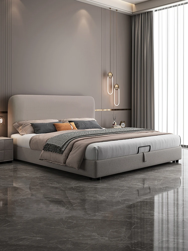 Nordic Minimalist Tech Fabric Bed - 1.8m Luxury Double Bed for Master Bedroom, Modern Soft-Packed Wedding Bed, Elegant and Simple Design