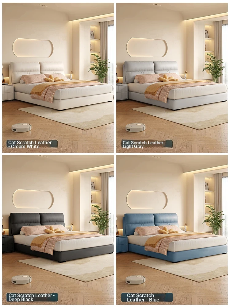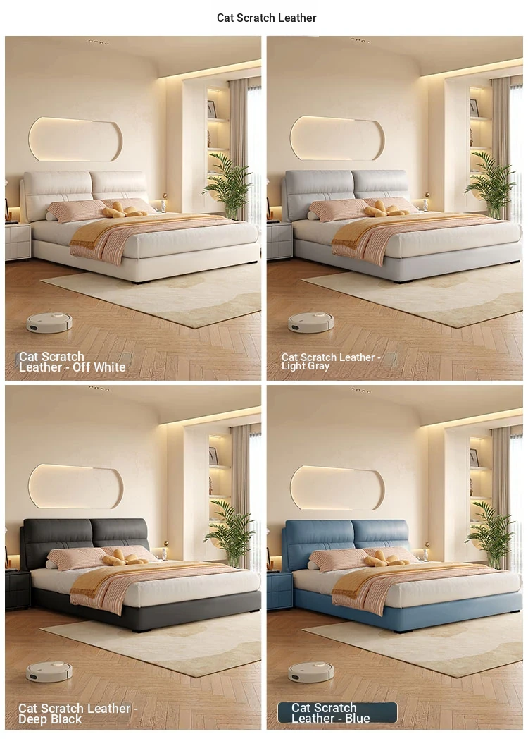 Cat scratch leather bed +1 cabinet((Solid wood mute bed board))