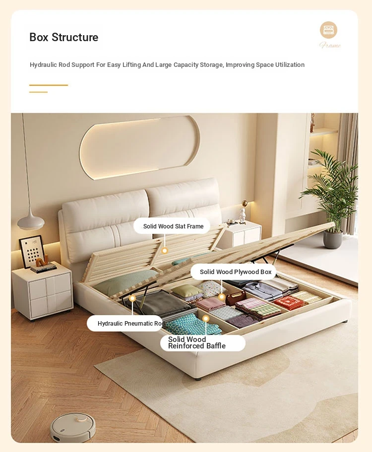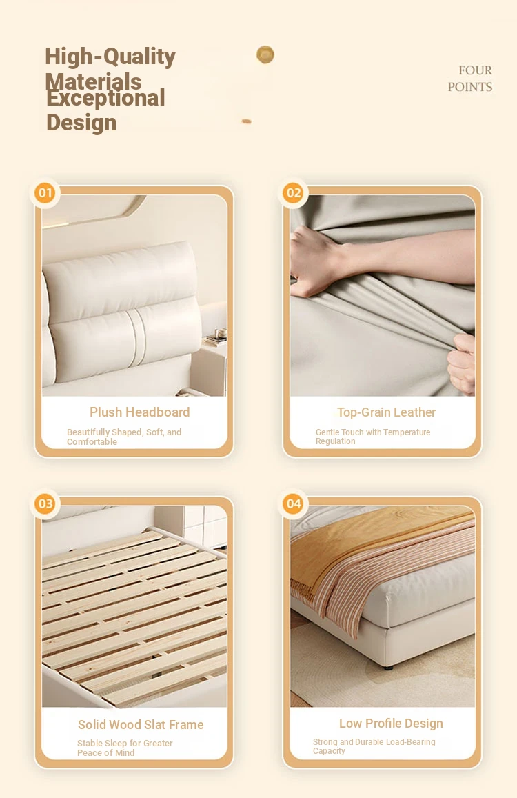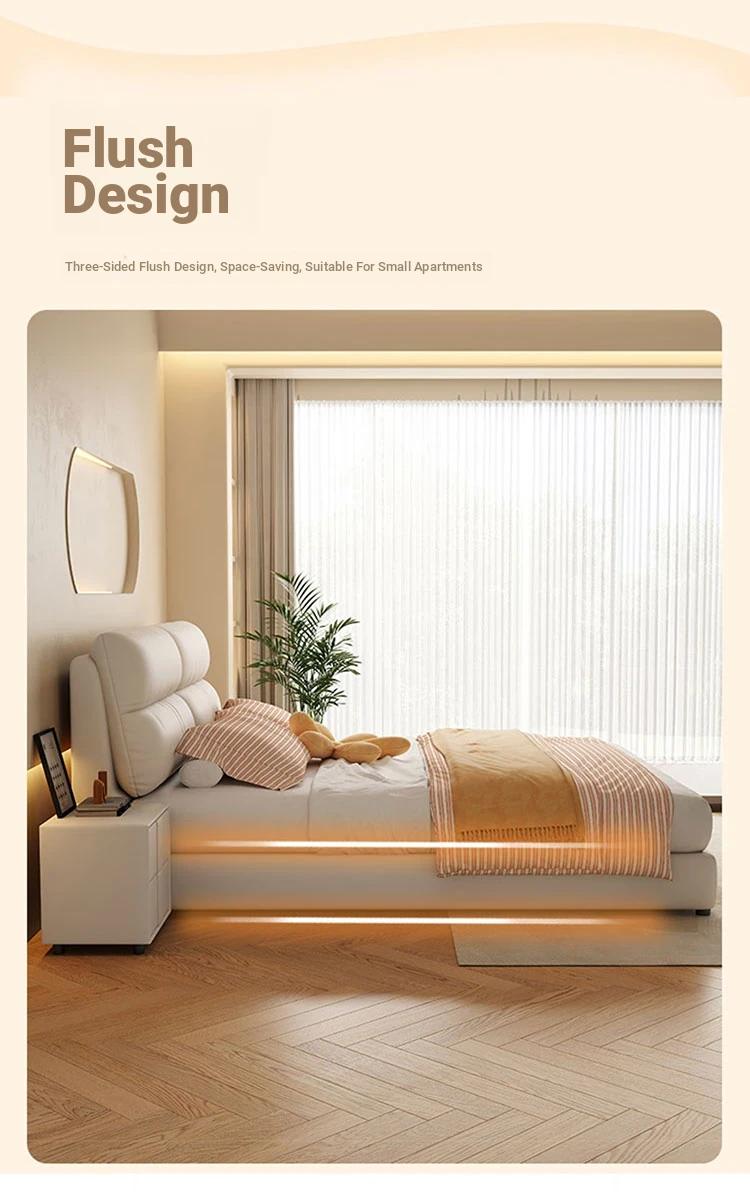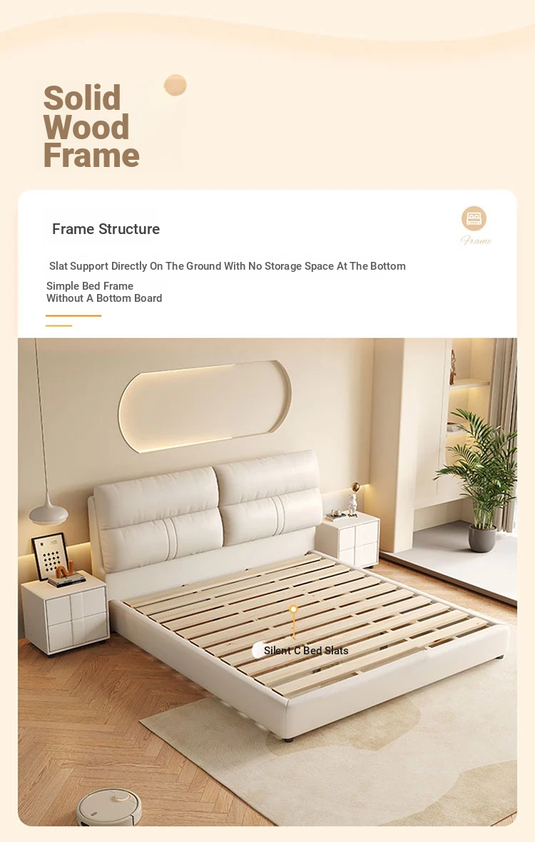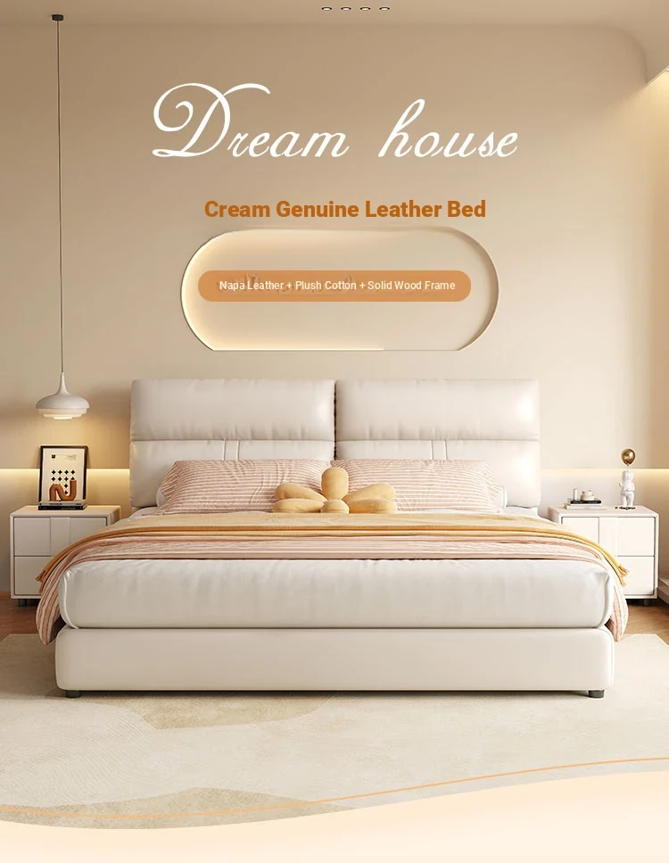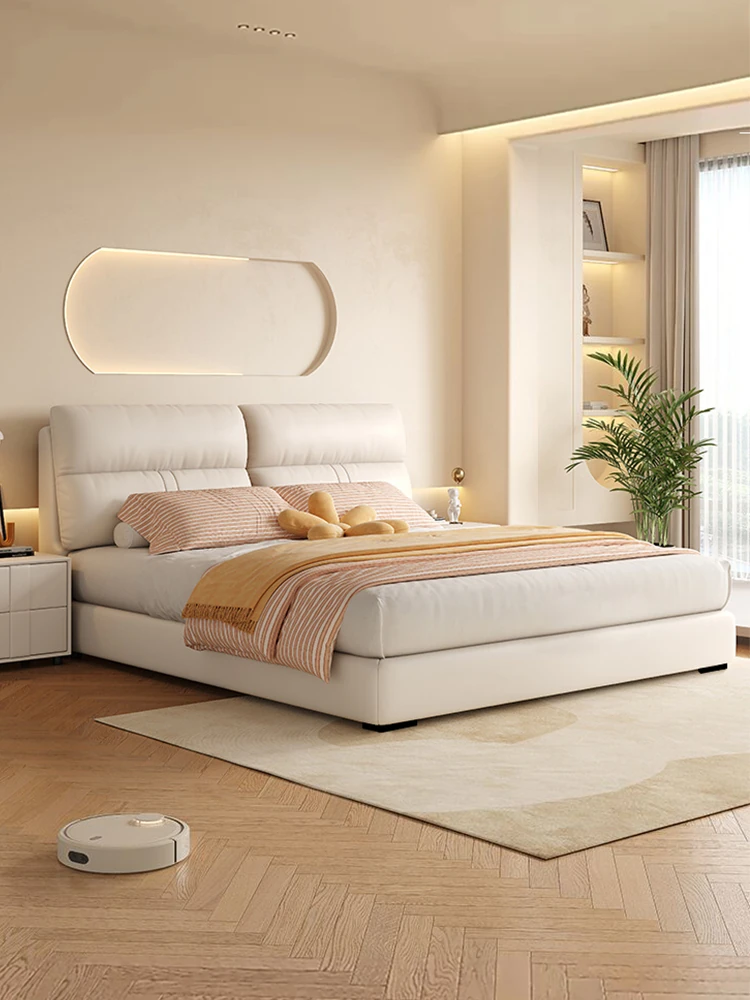 2025 New French Cream Style Double Bed – Modern Minimalist Luxury Upholstered Bed for Master Bedroom, 1.8m - Elevate Your Sleep Experience with Elegance and Comfort!