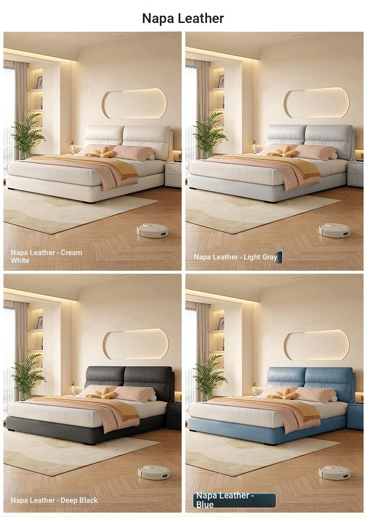 Cat scratch leather bed +360 independent pocket spring mattress +2 cabinets((Soft mute, package installation))