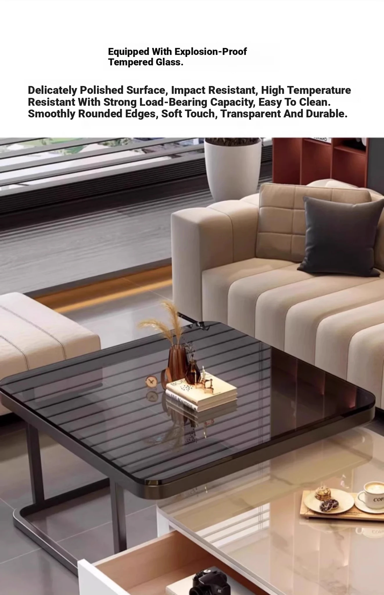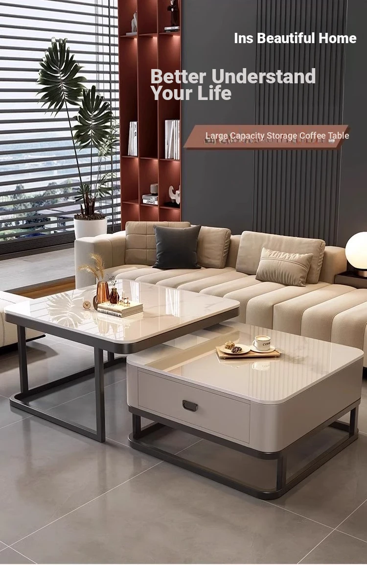 2025 New Minimalist Square Coffee Table for Living Room - Elegant and Chic Design for Small Spaces, Perfect for Home Use