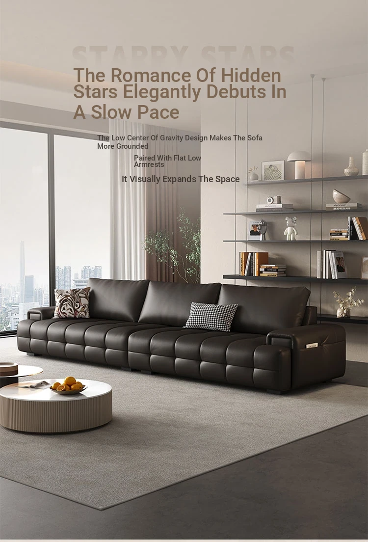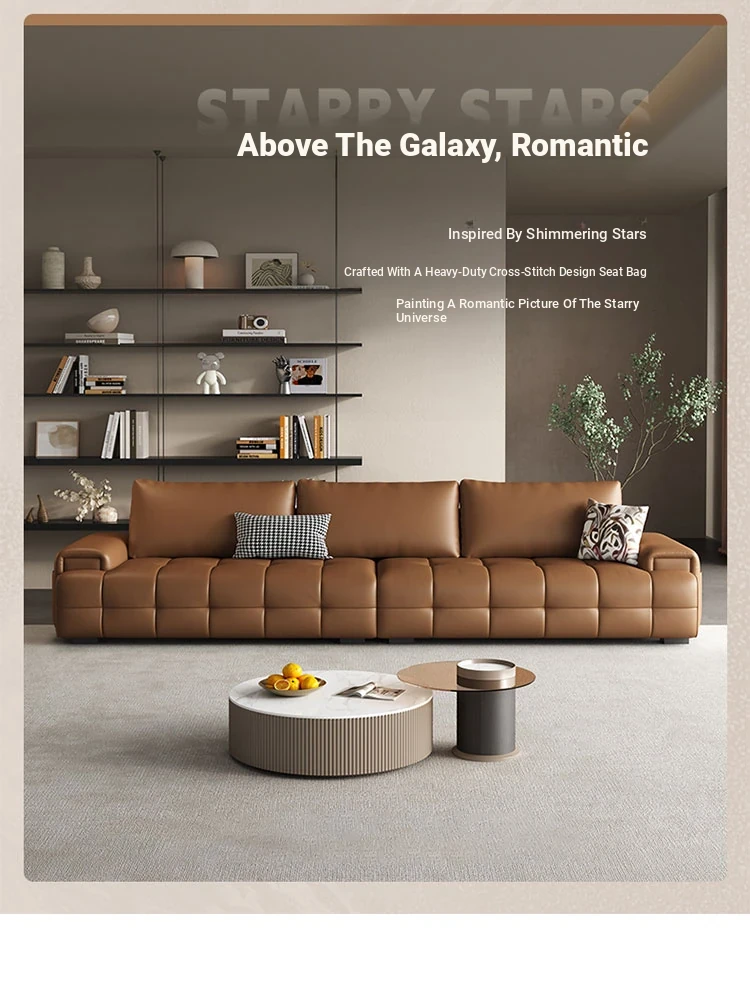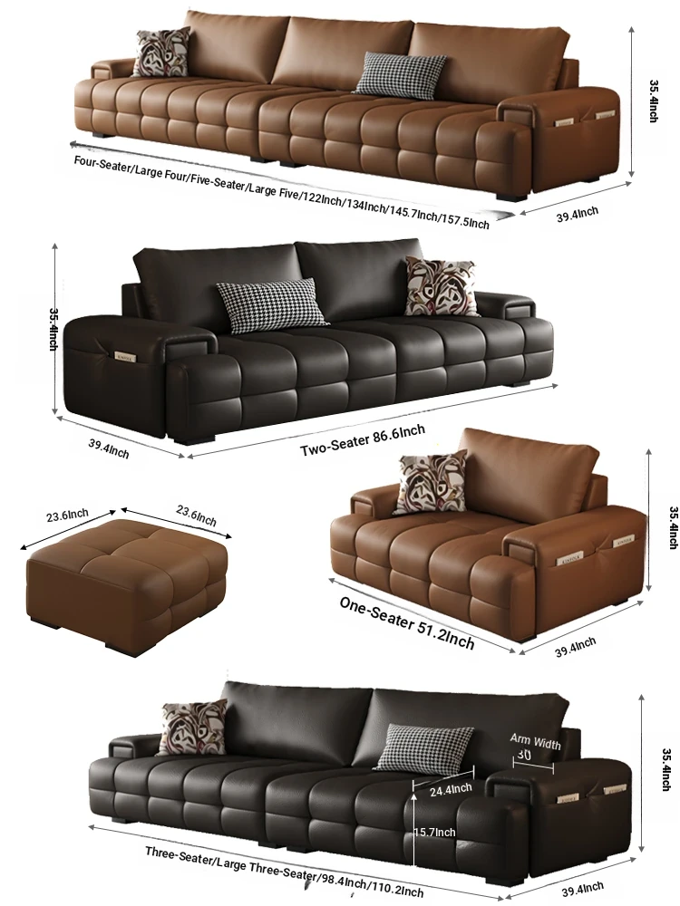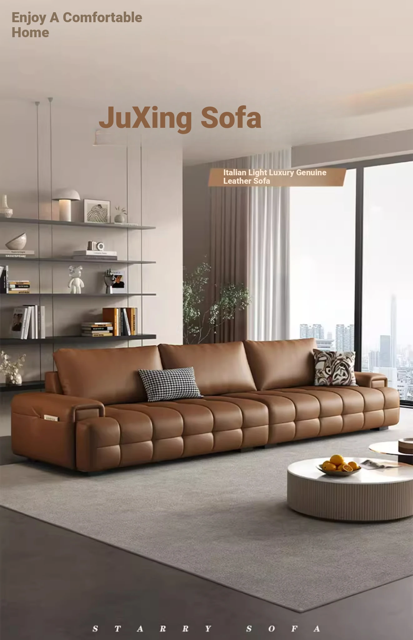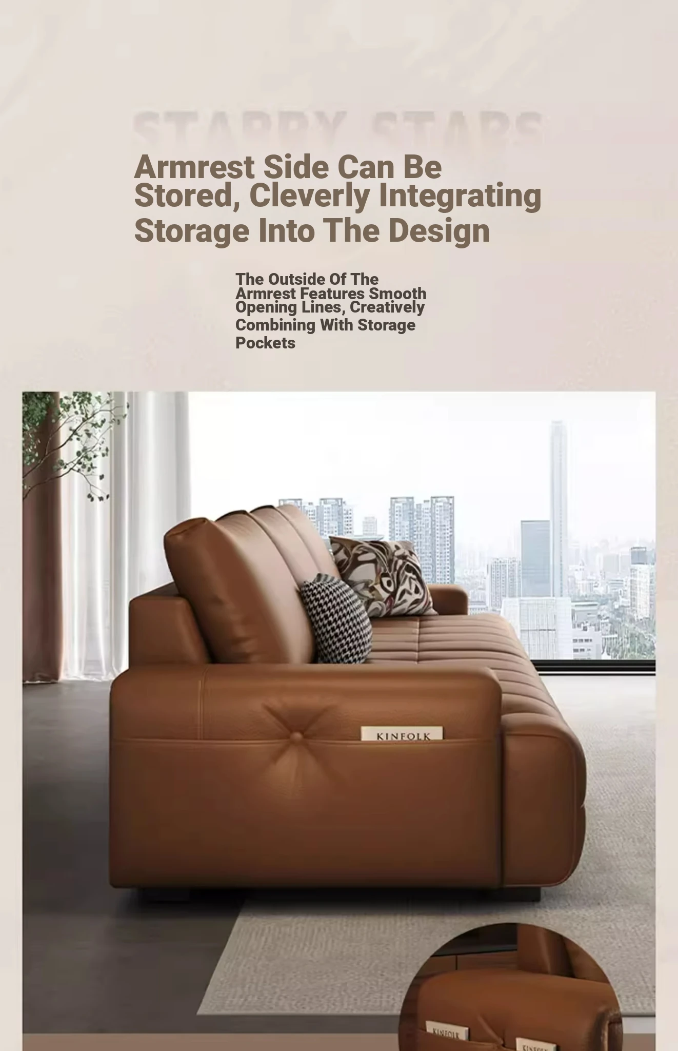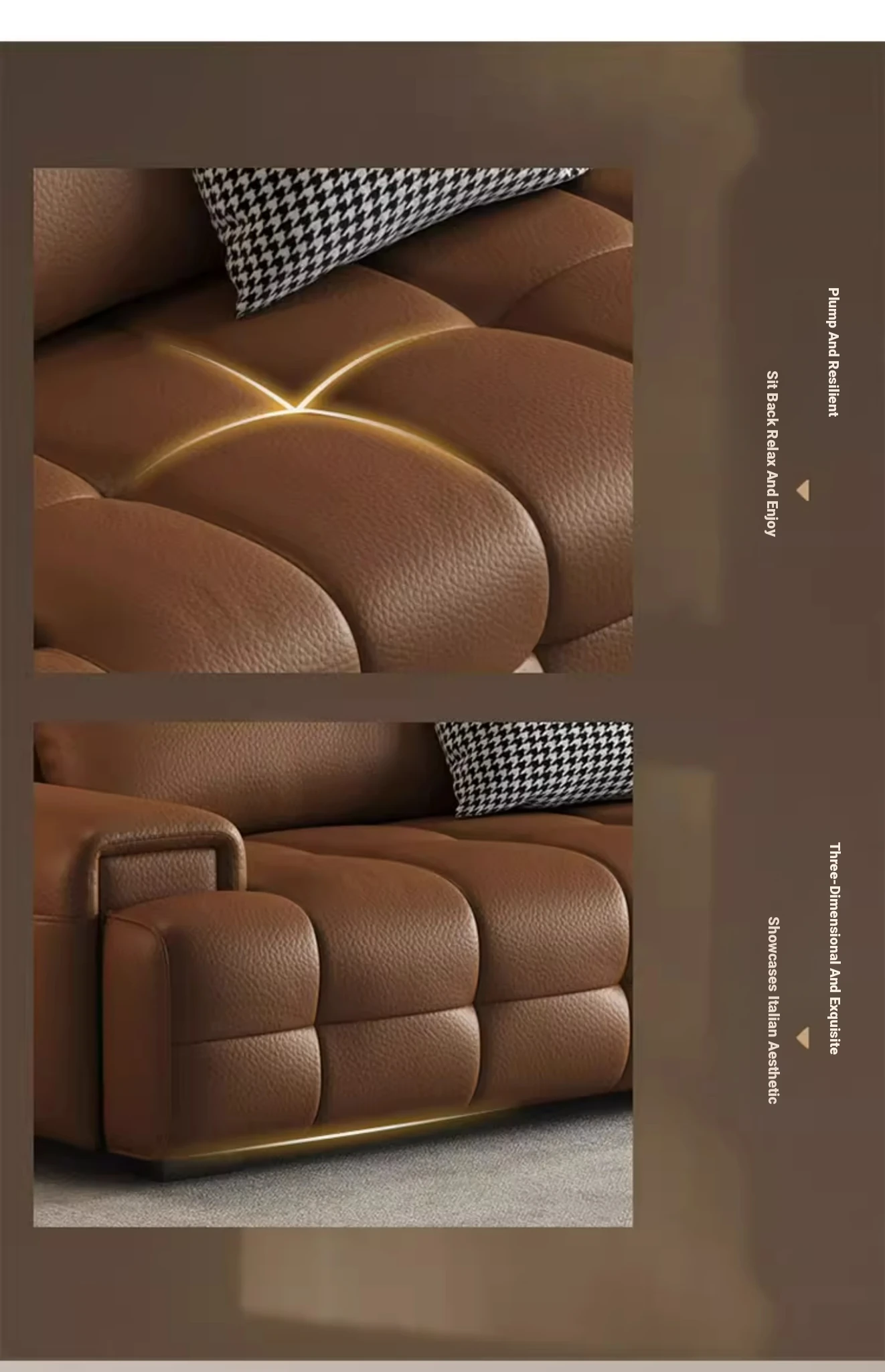 2025 New Retro Lawrence Genuine Leather Sofa - Modern Light Luxury Living Room Set for Spacious Villas and Homes