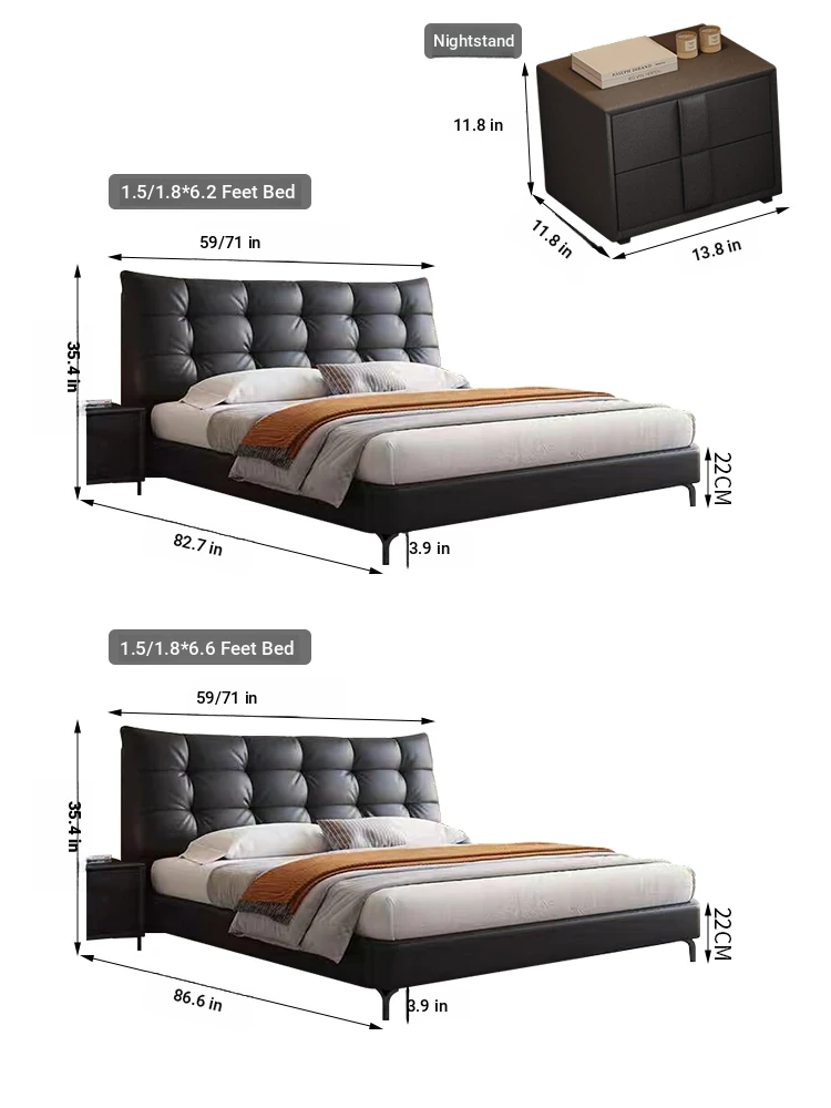 Cat scratch leather bed + winter and suiner dual-purpose 9D latex mattress +2 cabinets((Double-sided available, package installation))