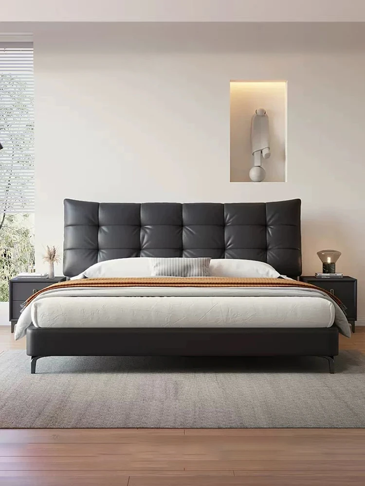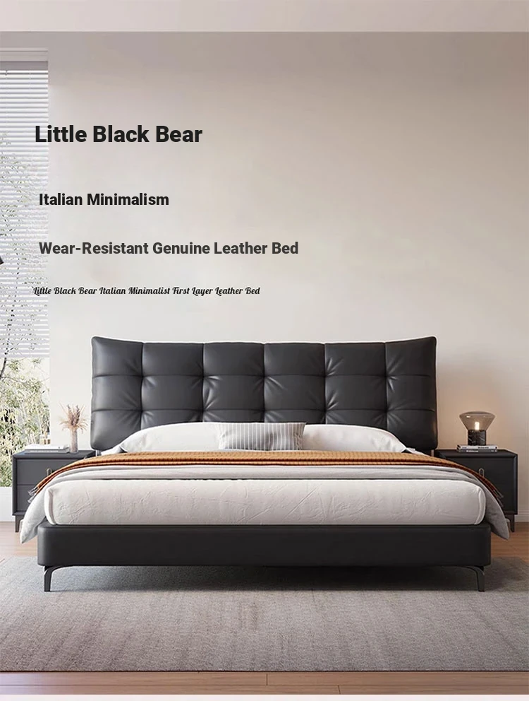 2025 New Stylish Black Bear Bed - Modern Minimalist Double Bed for Master Bedroom, Luxury Faux Leather Upholstered Soft Bed, Perfect for Newlyweds