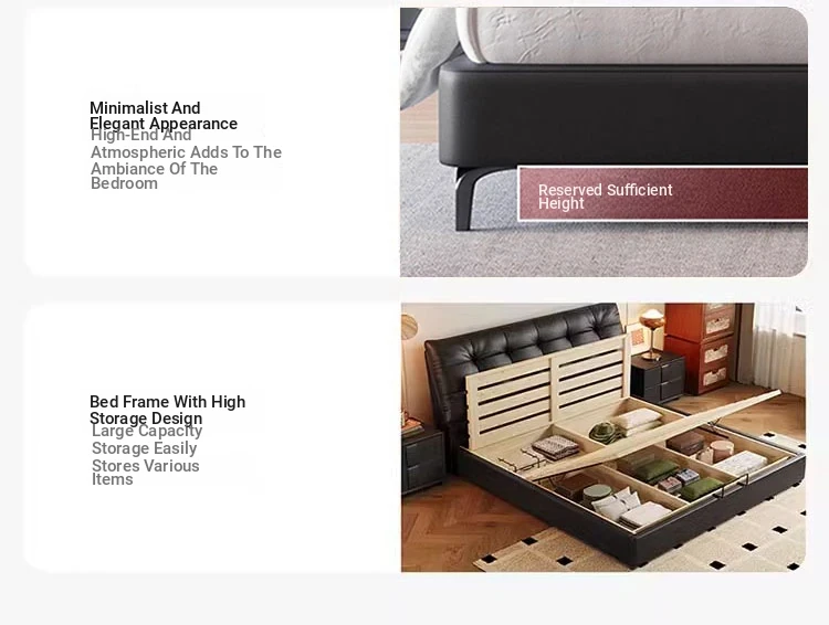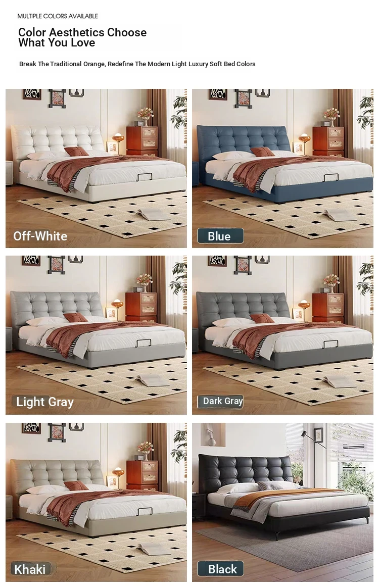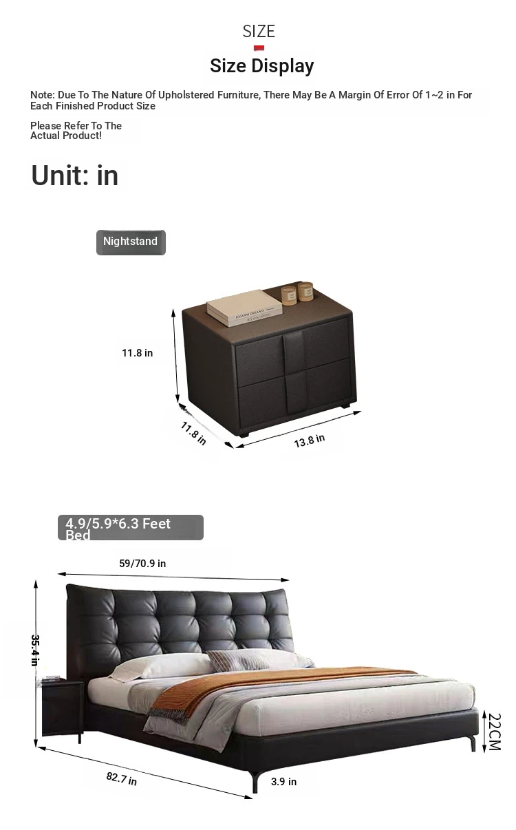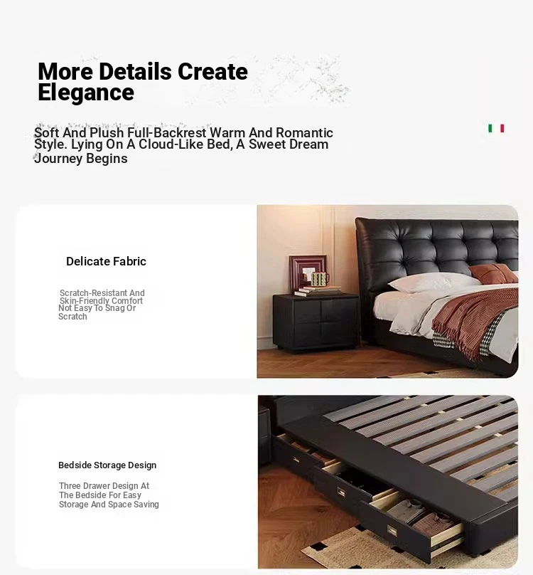 Cat scratch leather bed +360 independent pocket spring mattress +2 cabinets((Soft mute, package installation))