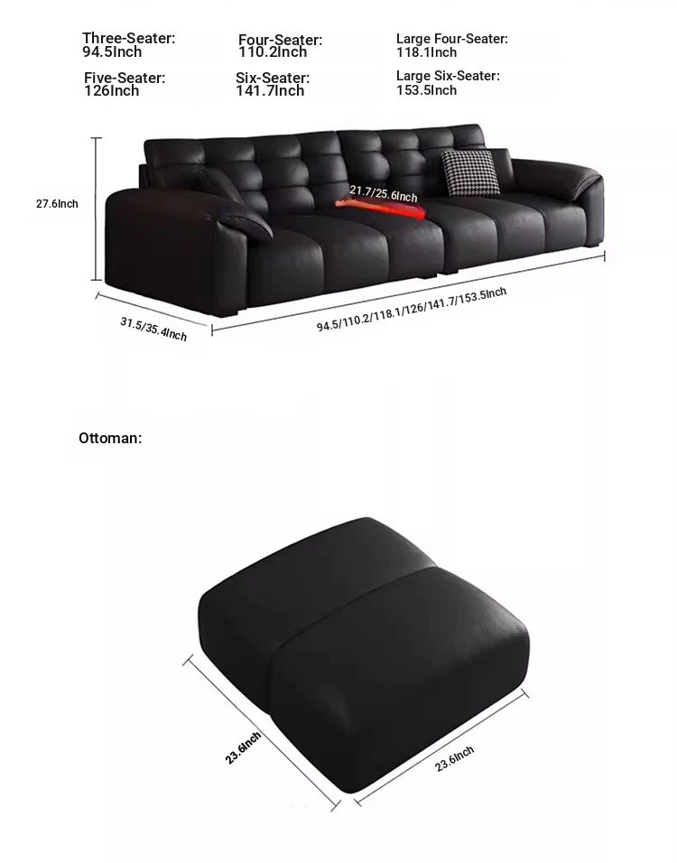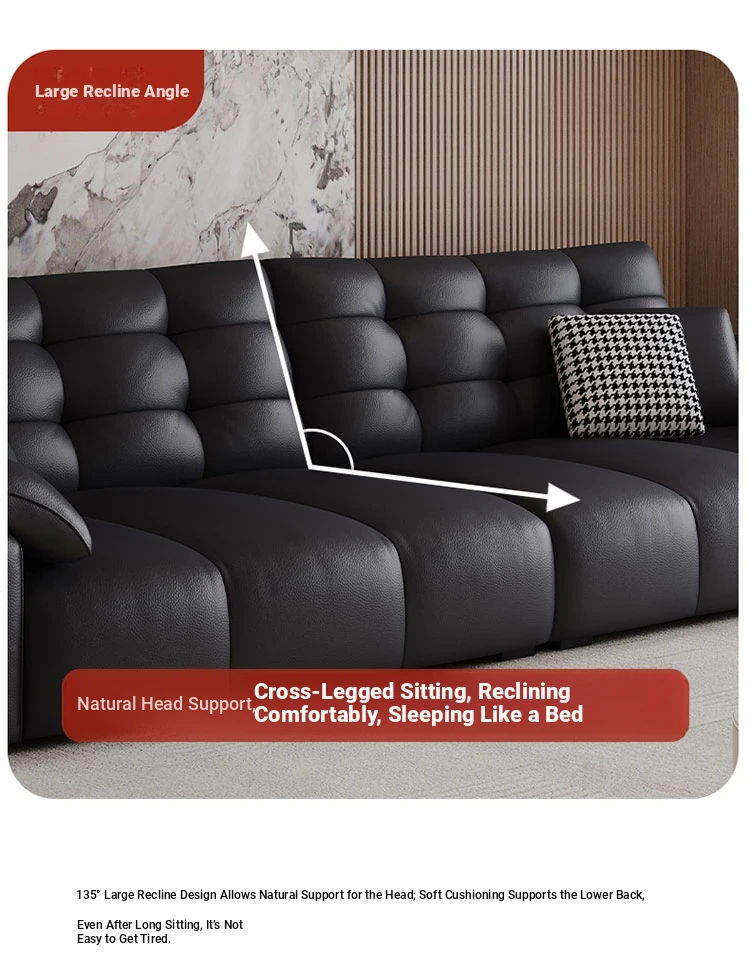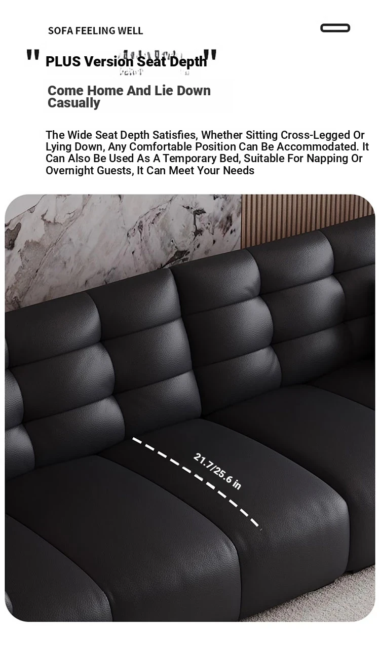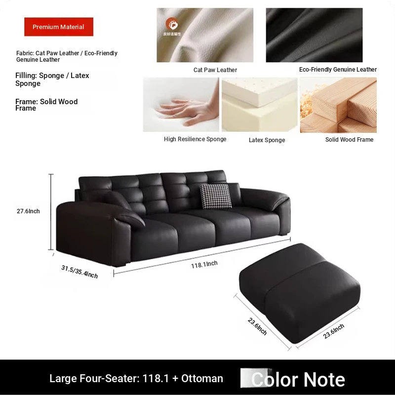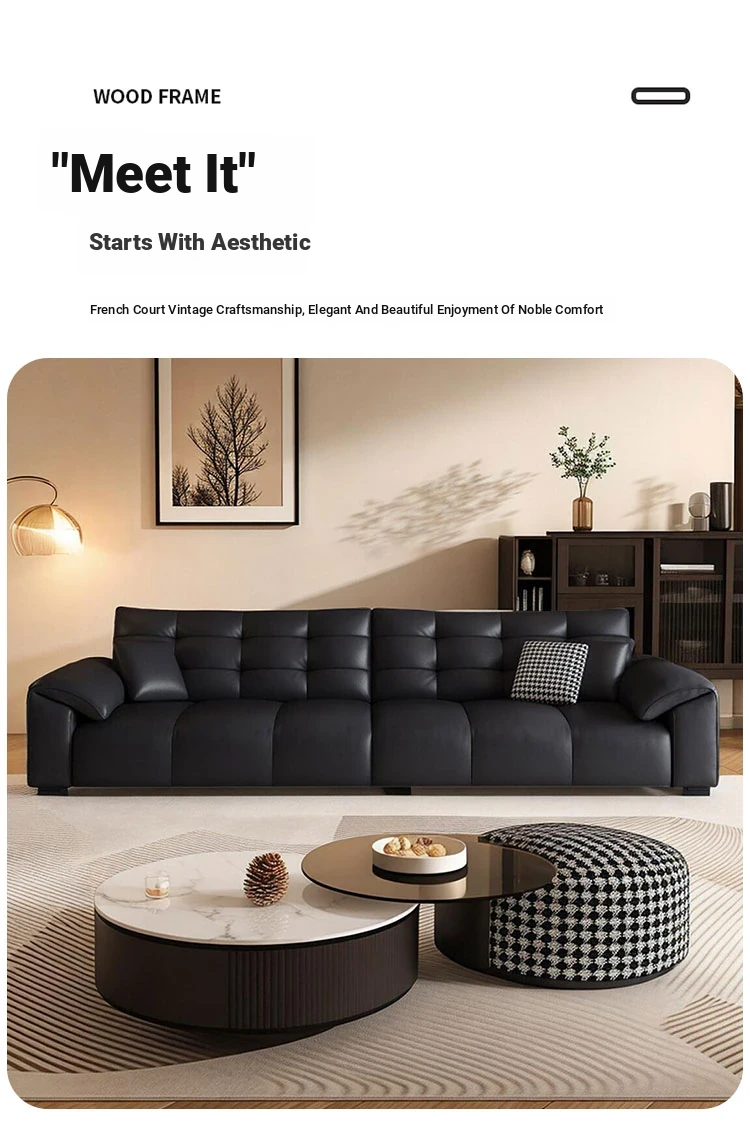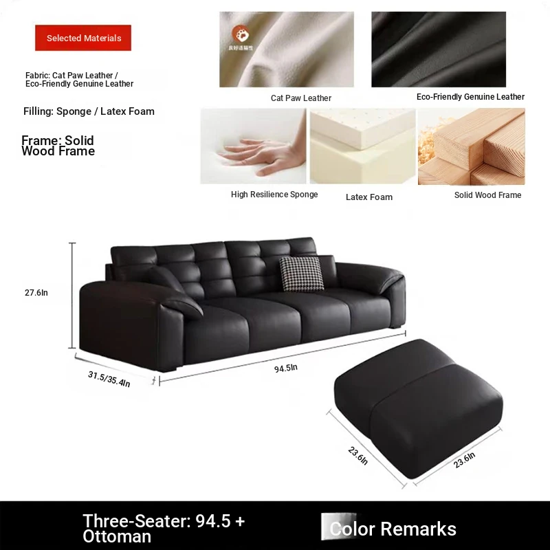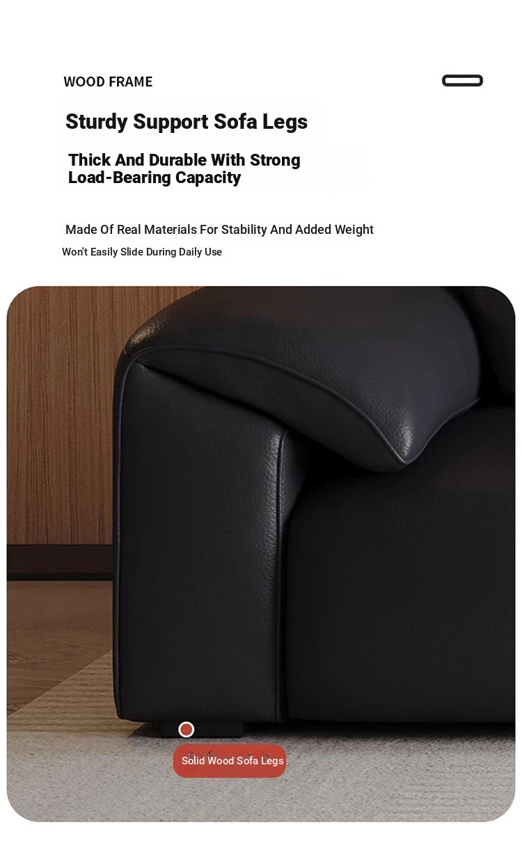 Italian Minimalist 2025 New Large Black Bear Genuine Leather Sofa - Luxurious Straight Four-Seater for Living Rooms of All Sizes, Perfect for Modern Homes