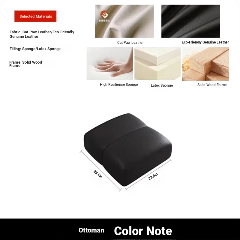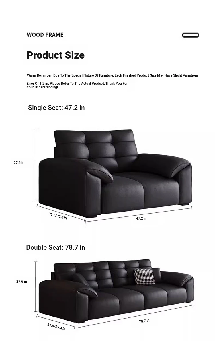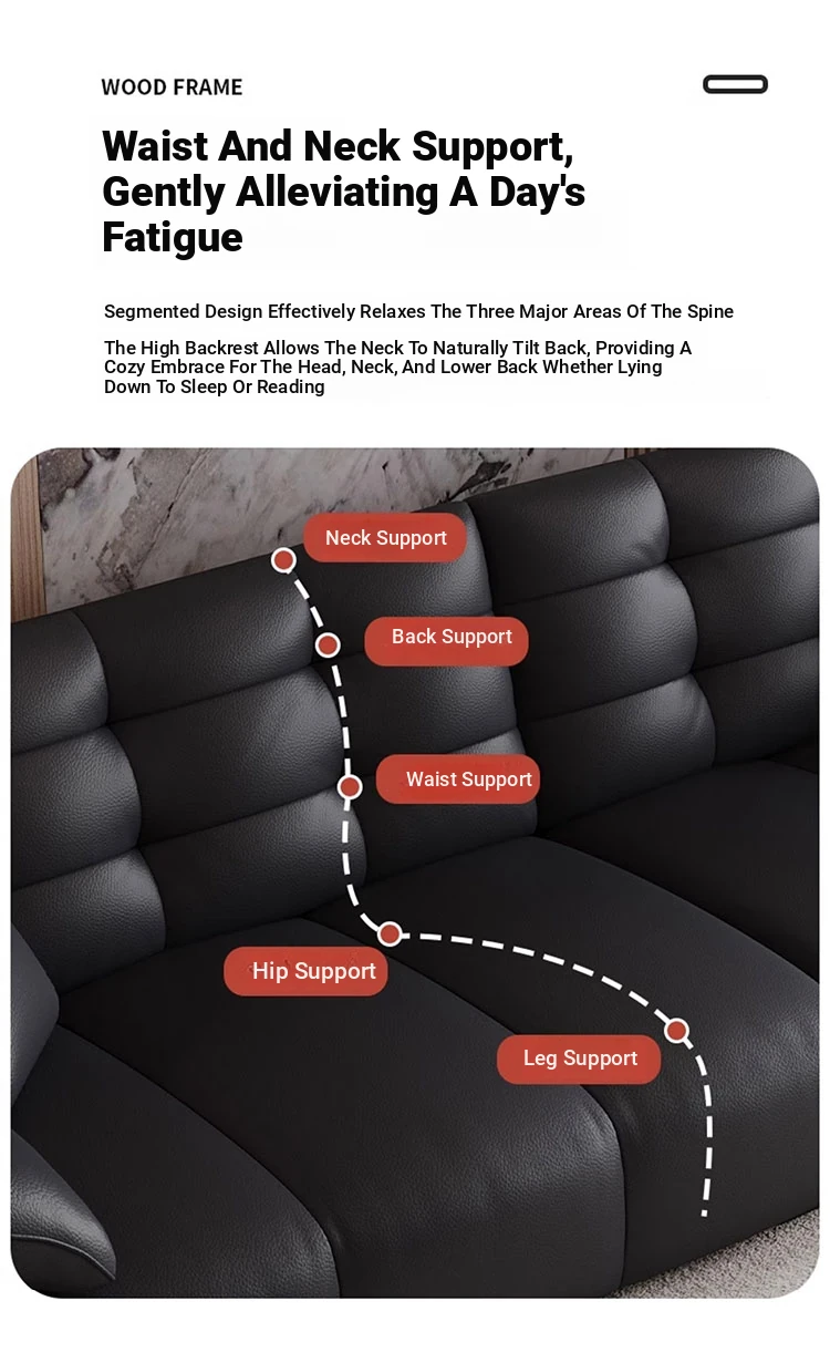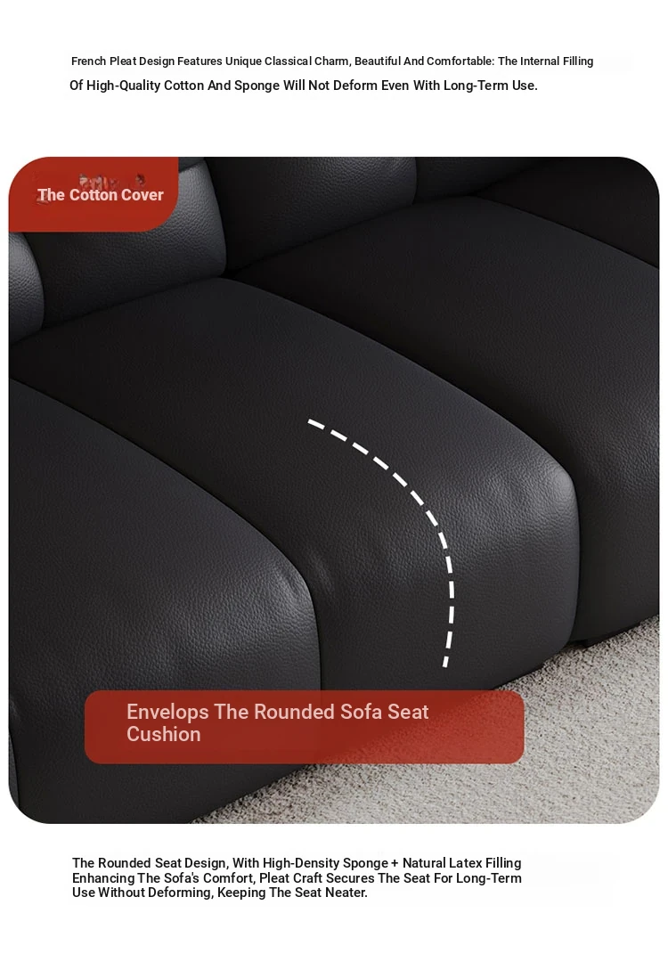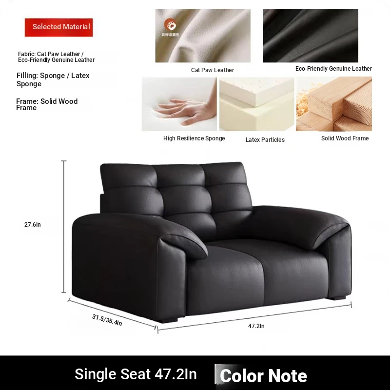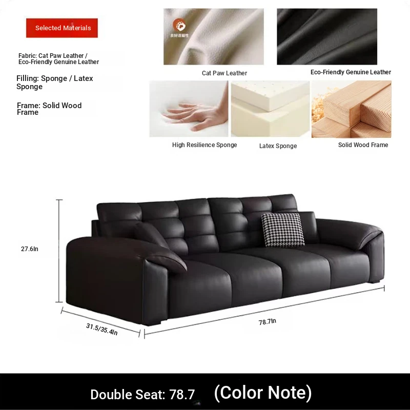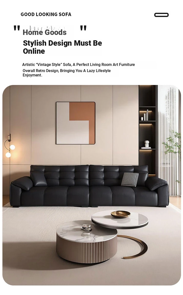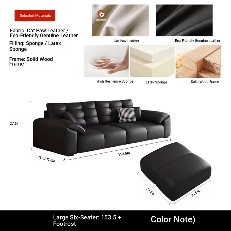Italian Minimalist 2025 New Large Black Bear Genuine Leather Sofa - Luxurious Straight Four-Seater for Living Rooms of All Sizes, Perfect for Modern Homes