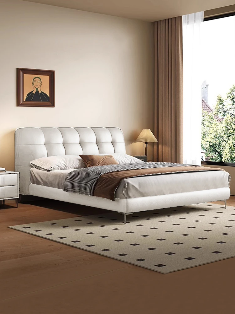 Luxury Puff Bed for Master Bedroom - Elegant 1.5m/1.8m Genuine Leather Double Bed, Modern Minimalist Soft Upholstered Wedding Bed