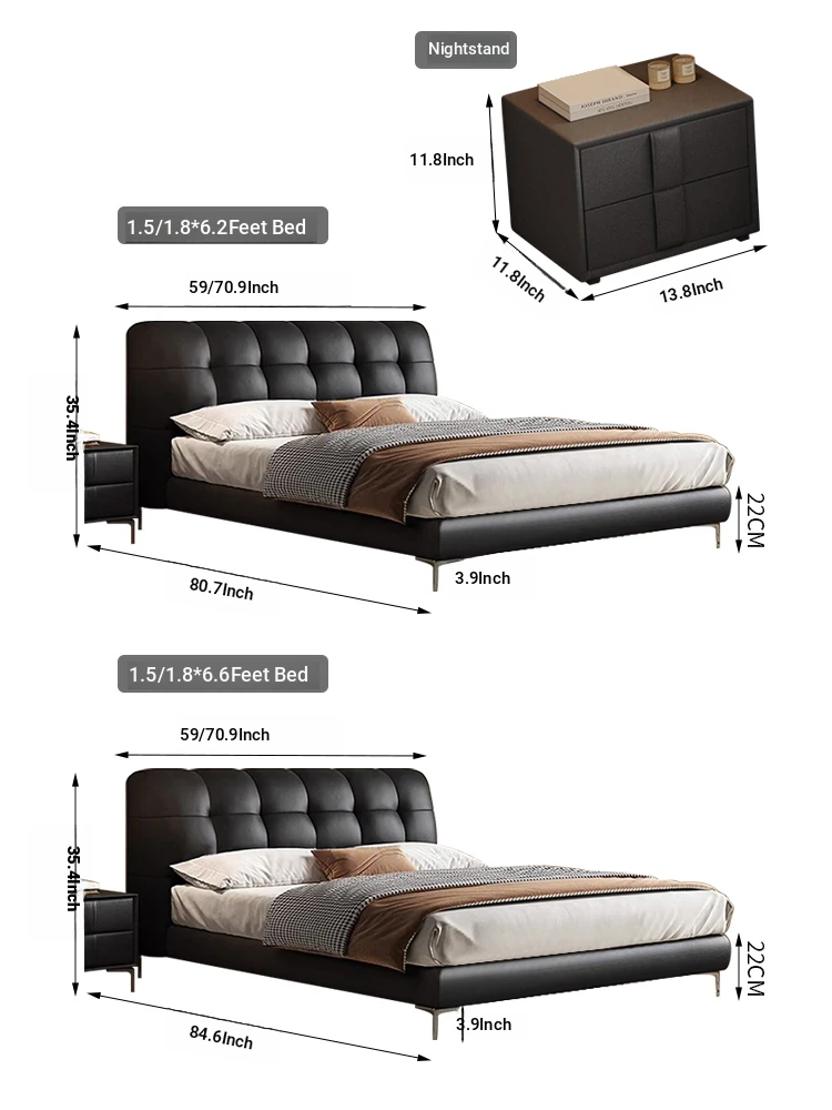 Leather bed + winter and suiner dual-purpose 9D latex mattress +2 cabinets