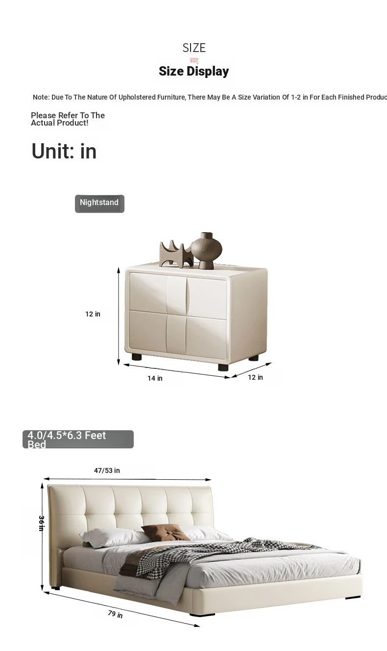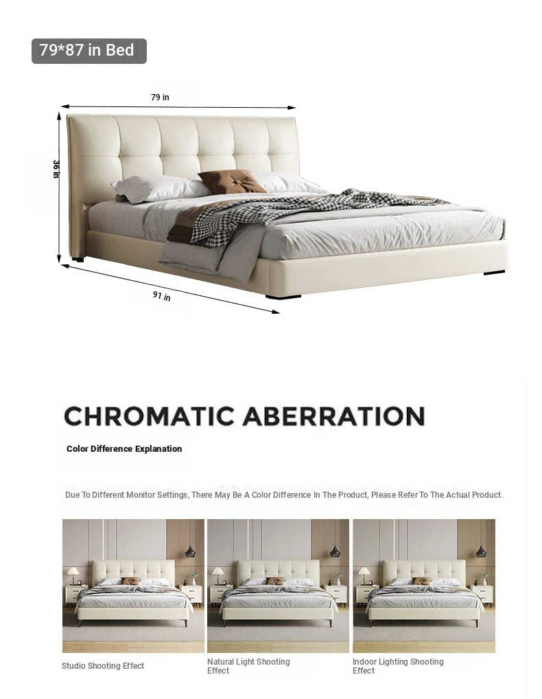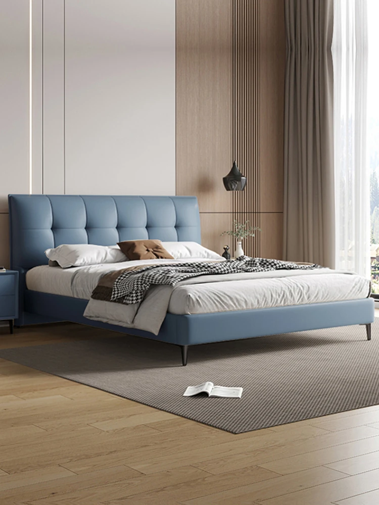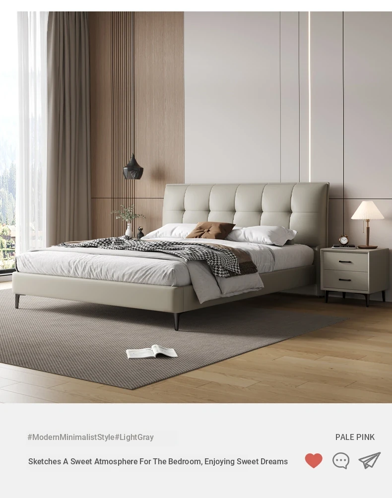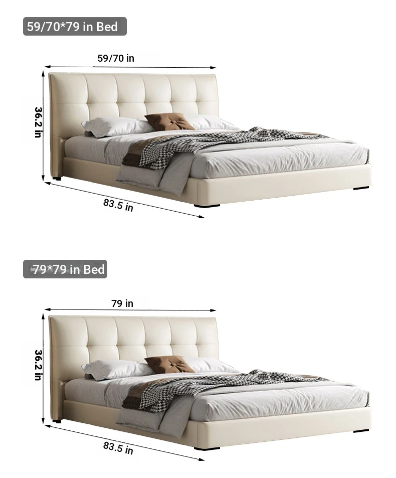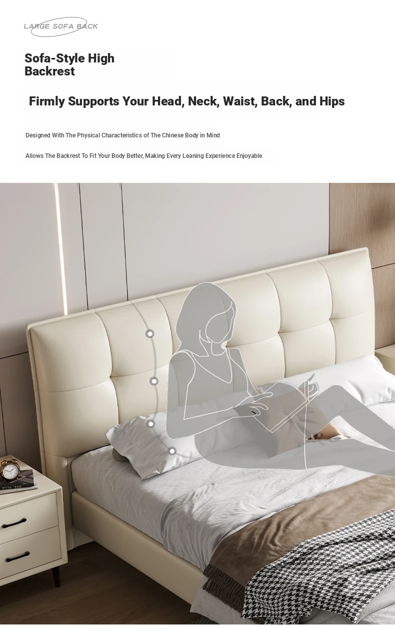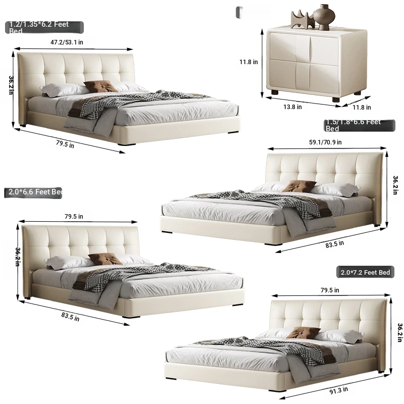 Modern French Cream Upholstered Double Bed - Luxurious and Elegant Leather Bed for Master Bedroom, Soft and Stylish Design, 1.5m Size, Perfect for a Chic Living Space.
