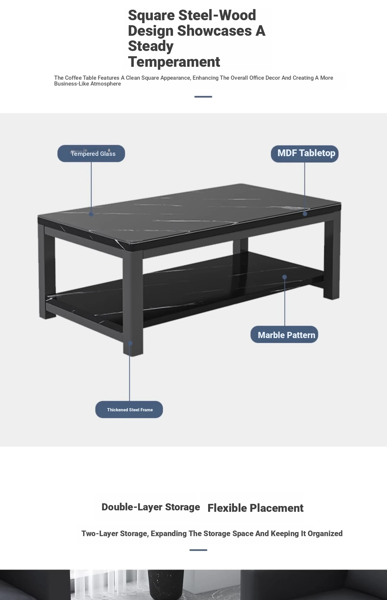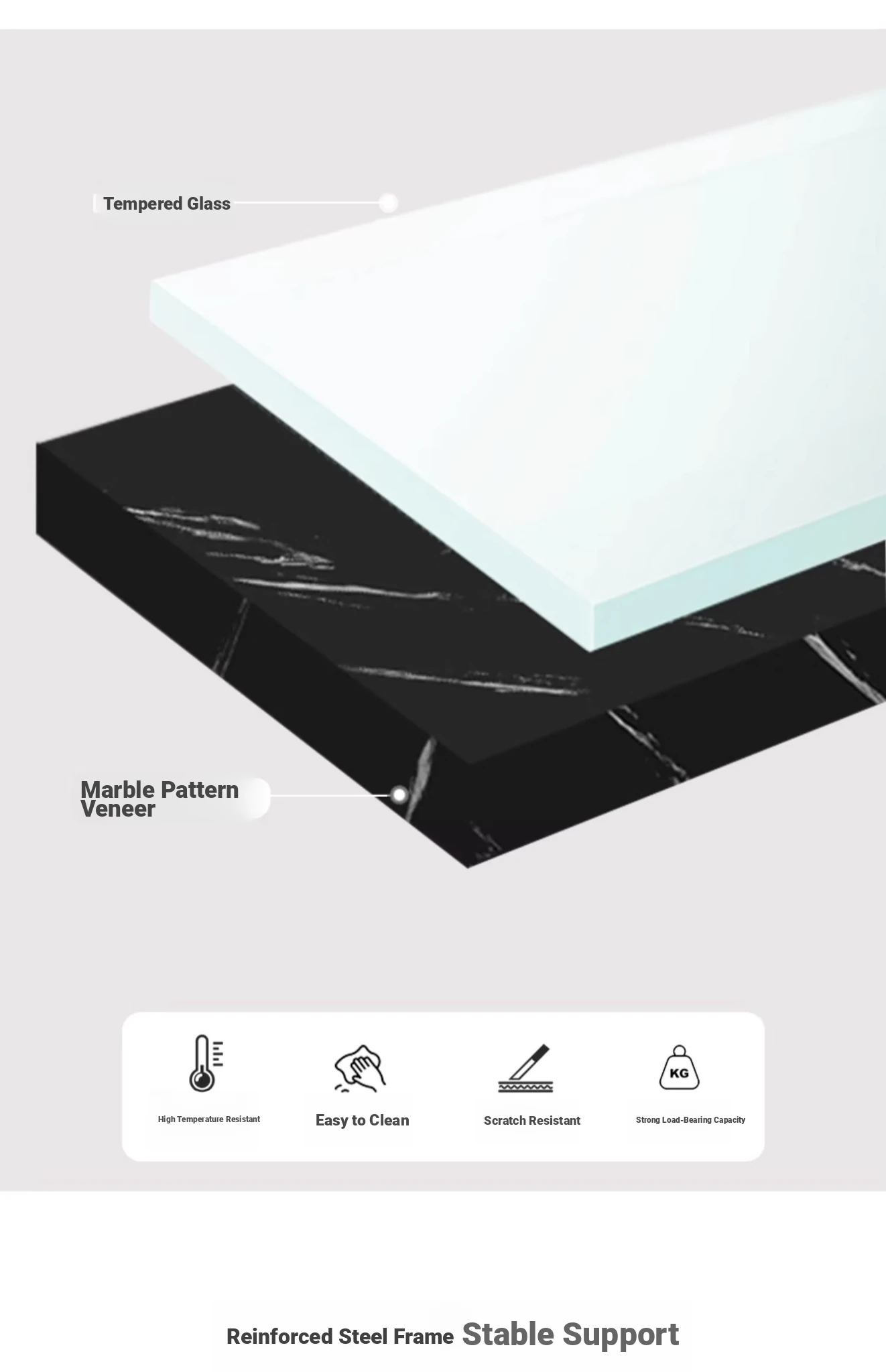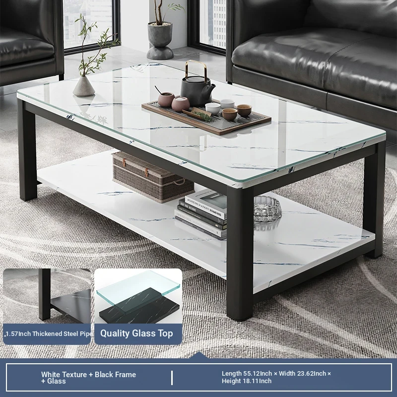 [1.57in thick steel pipe + glass table] white grain color 55.12in*23.62in*18.11in