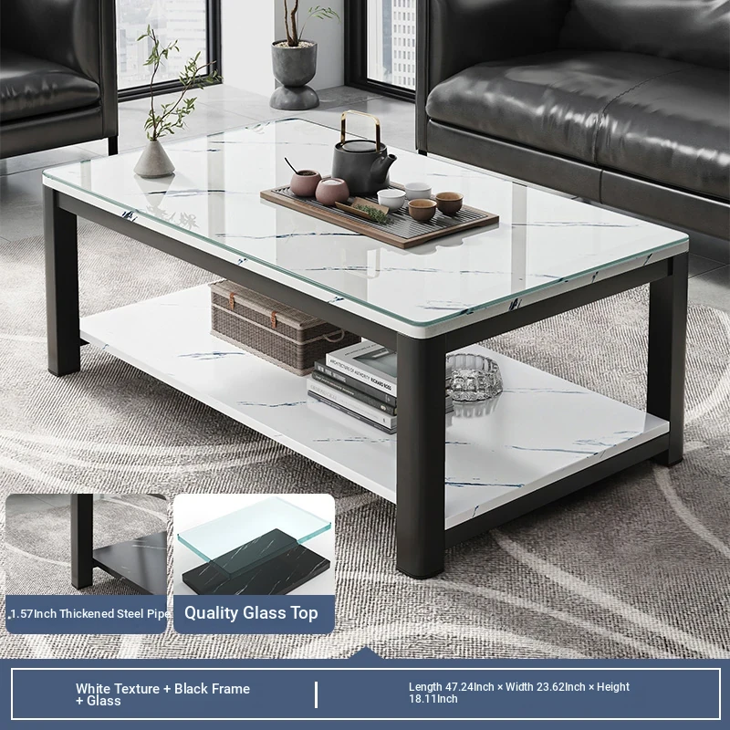 [1.57in thick steel pipe + glass table] white grain color 47.24in*23.62in*18.11in