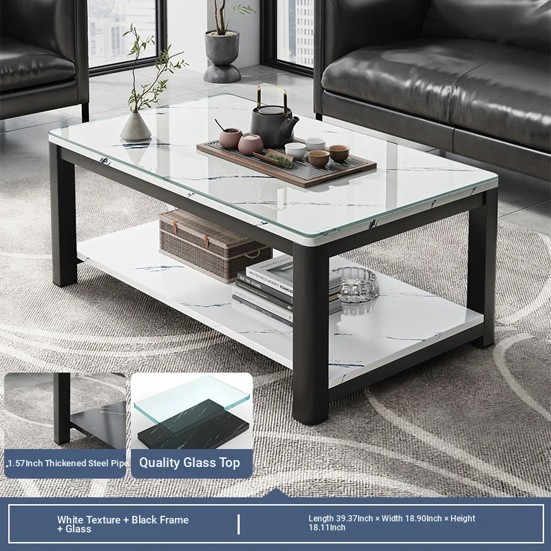 [1.57in thick steel pipe + glass table] white grain color 39.37in*18.90in*18.11in