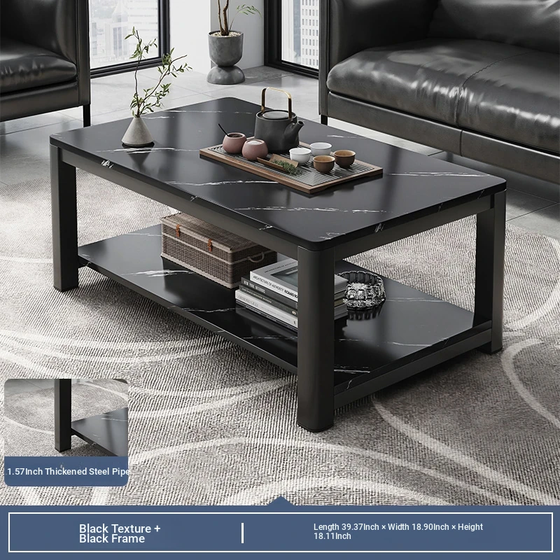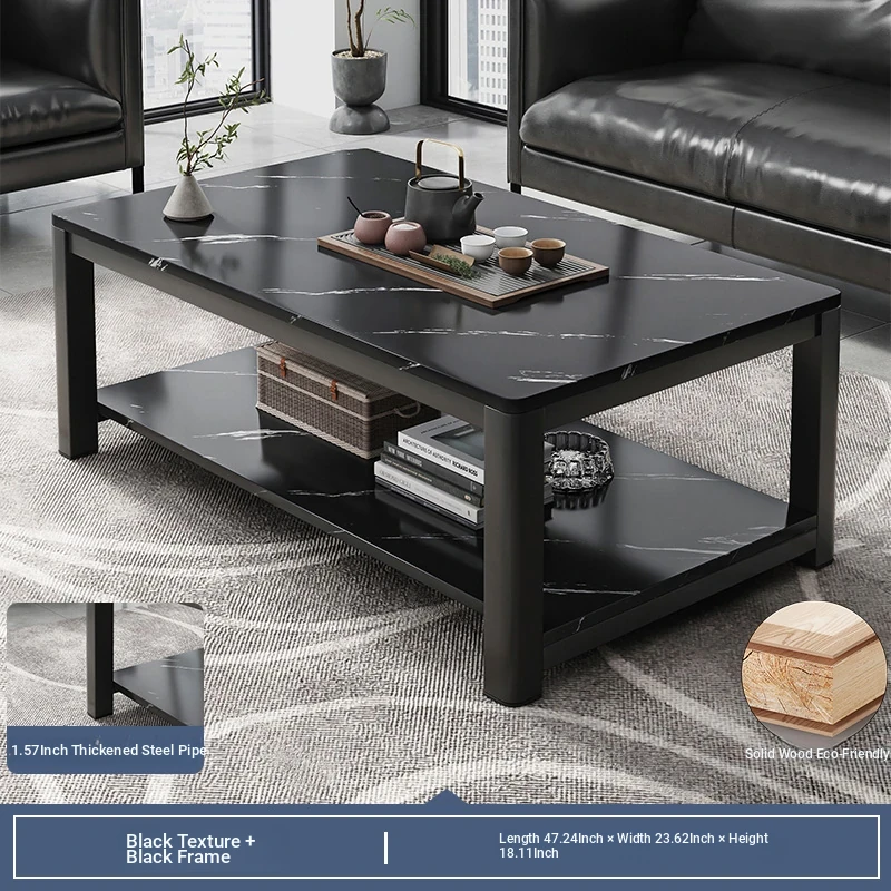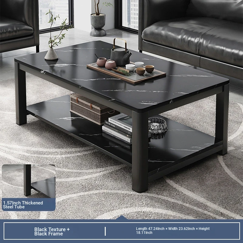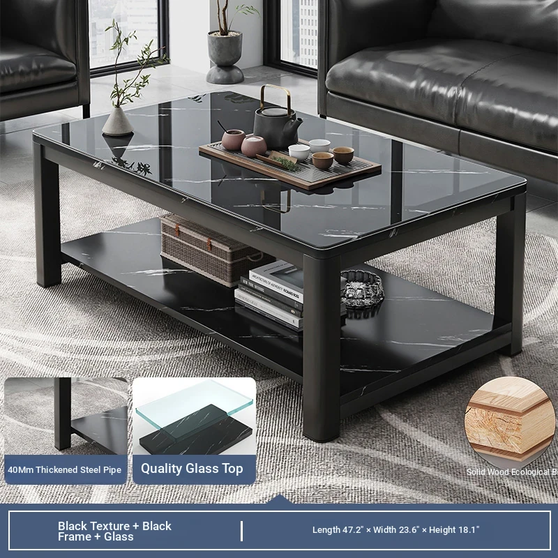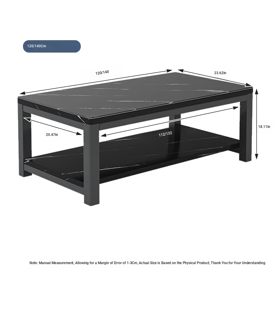 [1.57in thick steel pipe + glass table] black color 47.24in*23.62in*18.11in