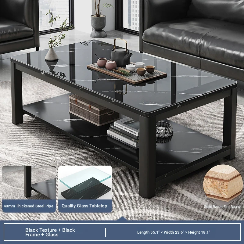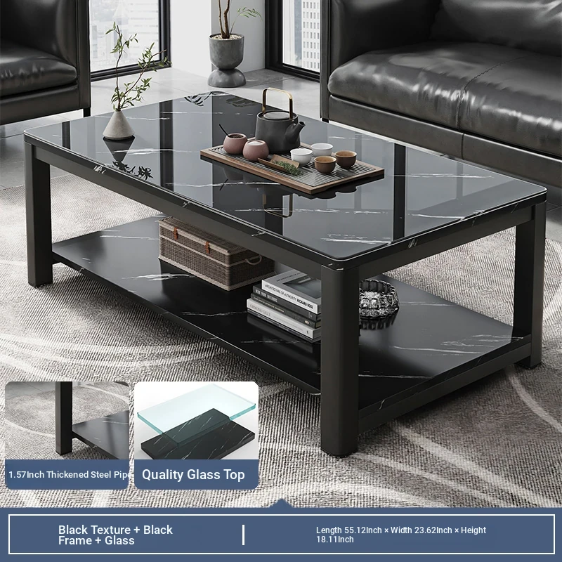 [1.57in thick steel pipe + glass table] black color 55.12in*23.62in*18.11in
