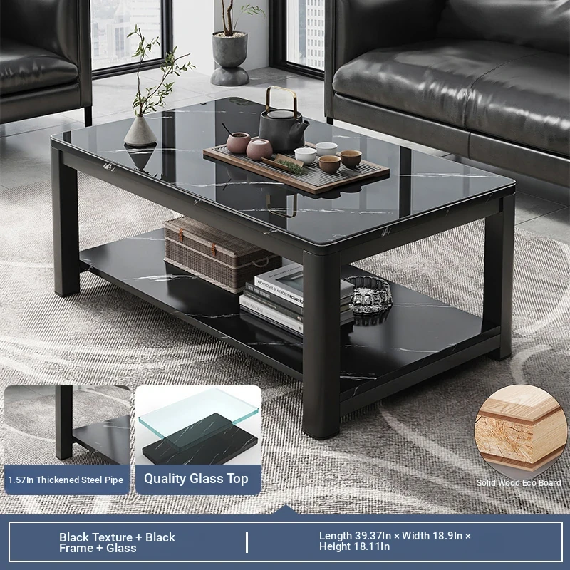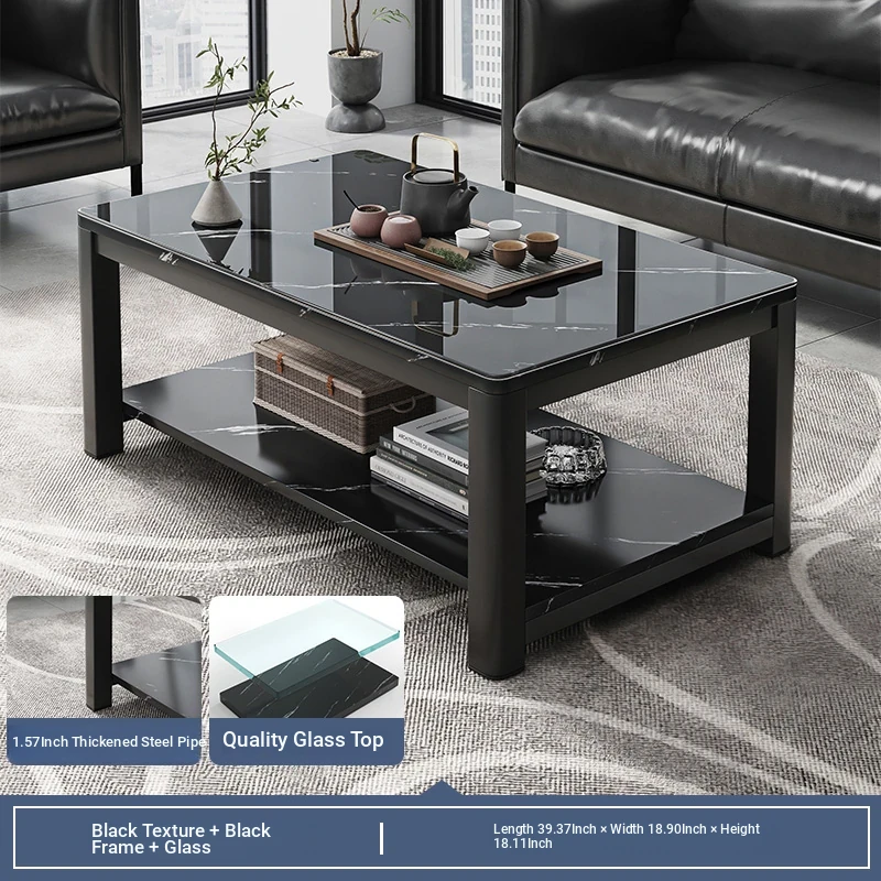 [1.57in thick steel pipe + glass table] black color 39.37in*18.90in*18.11in