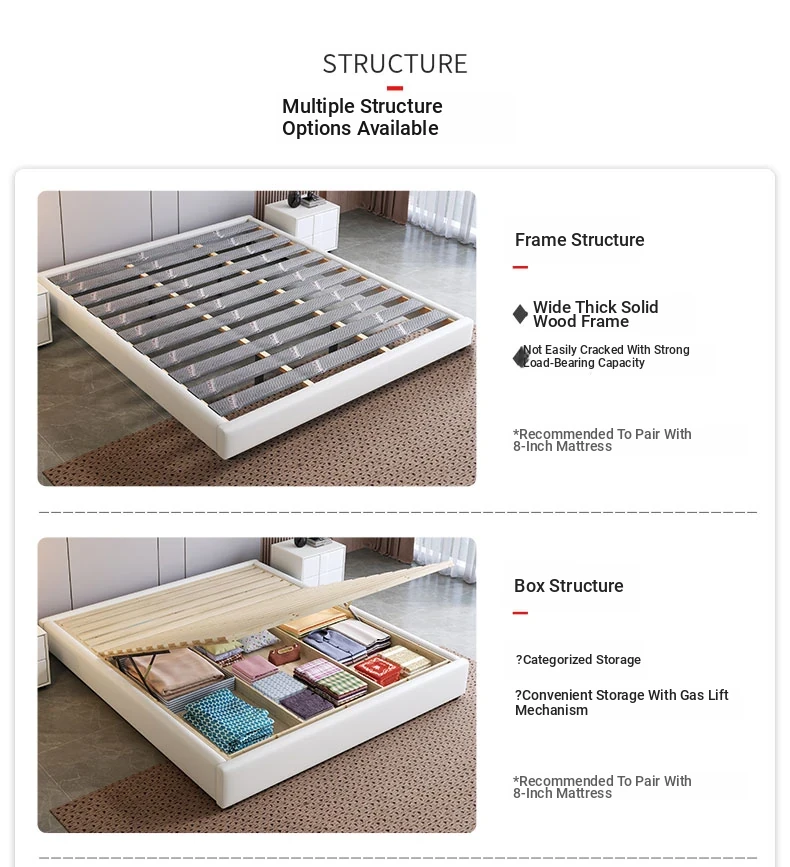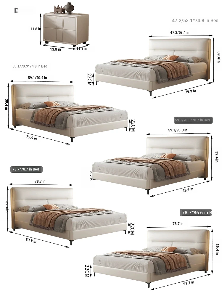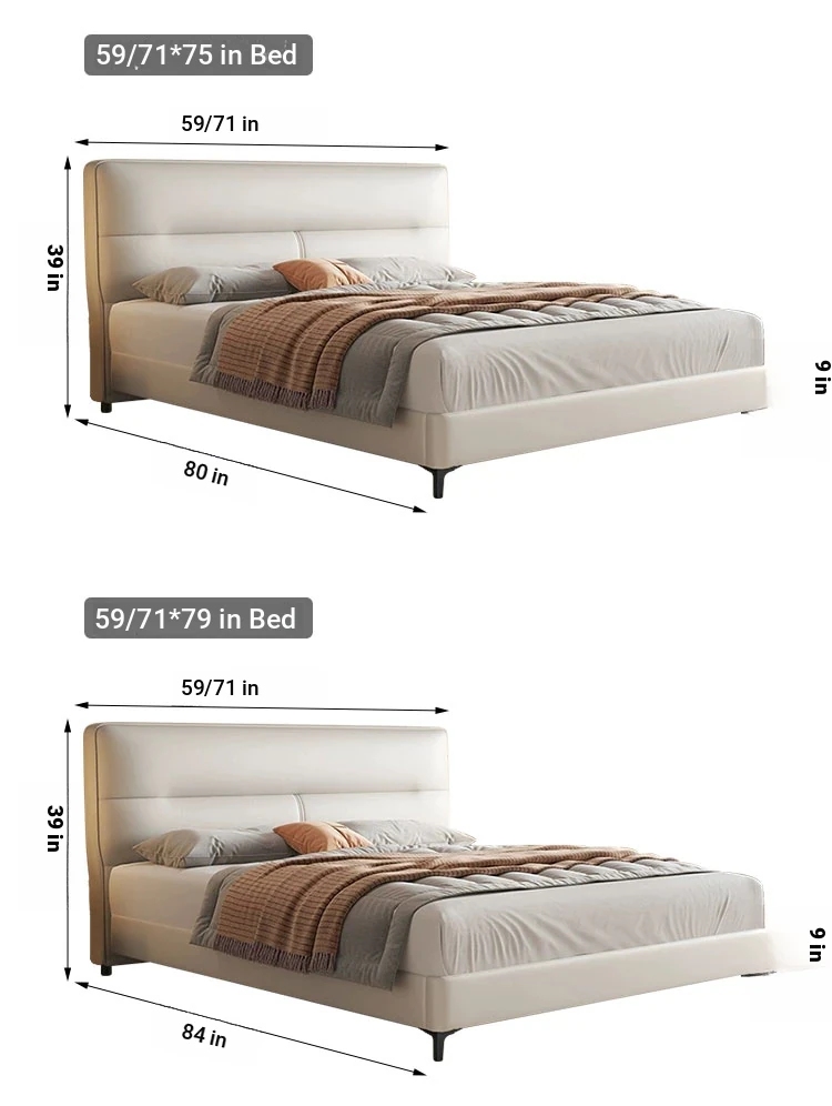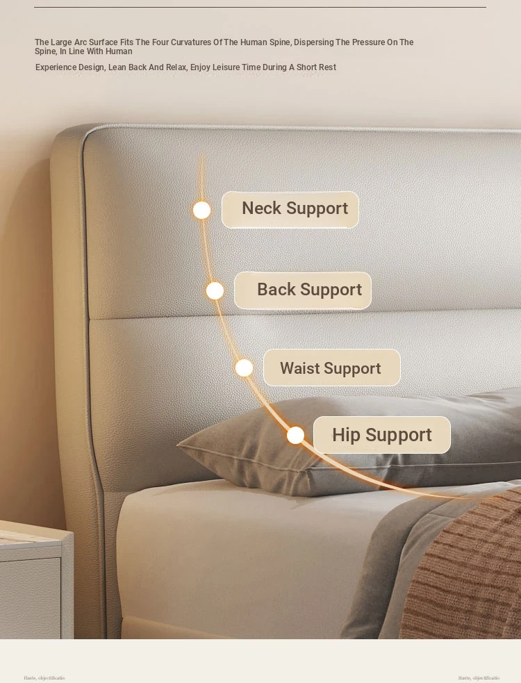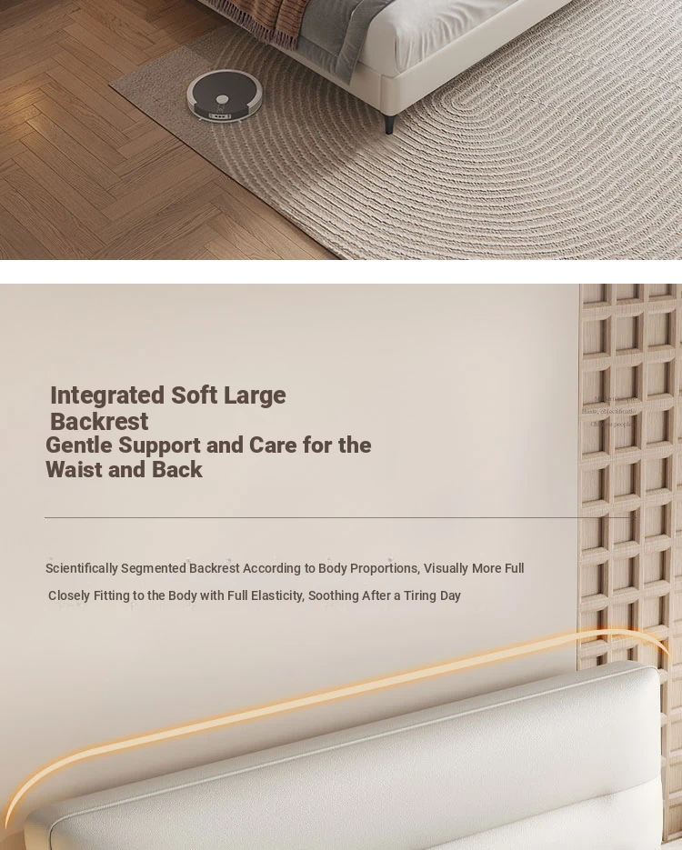 Nordic Luxury Faux Leather Bed - Modern Minimalist Double Bed for Master Bedroom, High-End Genuine Leather Design, Solid Wood Frame with Soft Upholstery, Perfect for Newlyweds