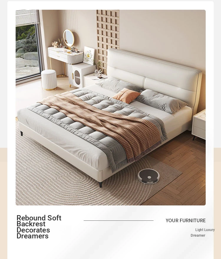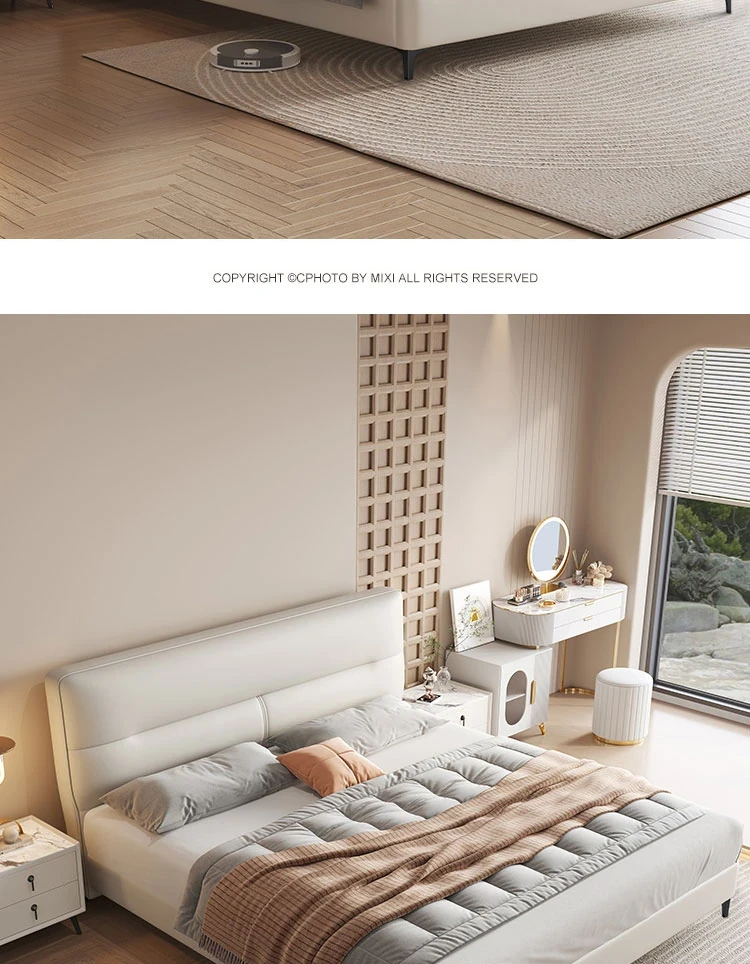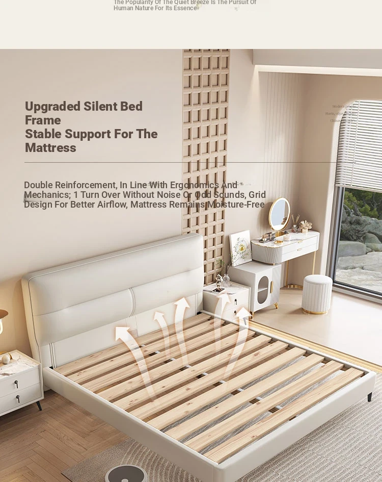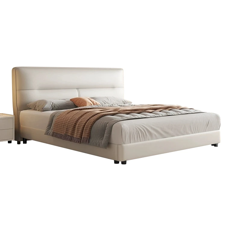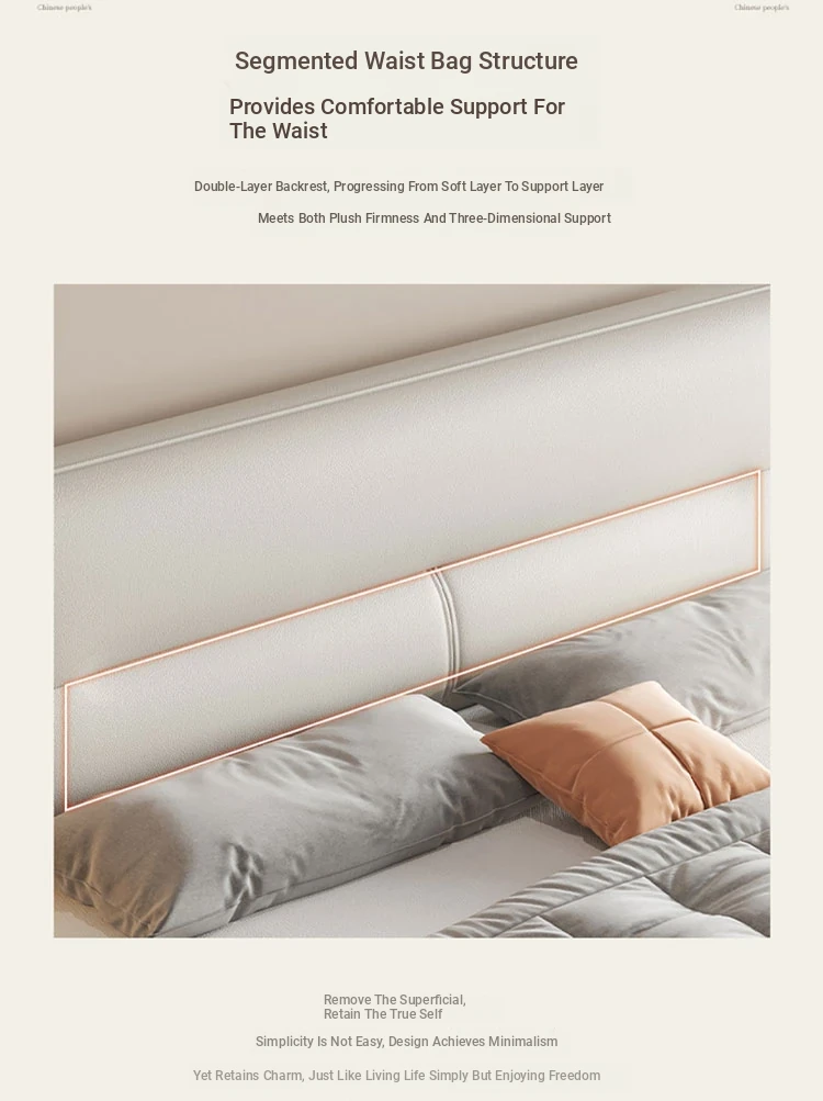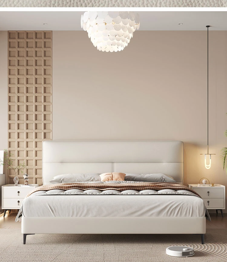 Nordic Luxury Leather Upholstered Bed - Modern Minimalist Double Bed for Master Bedroom, Premium Genuine Leather with Solid Wood and Soft Padding, Perfect for Newlyweds