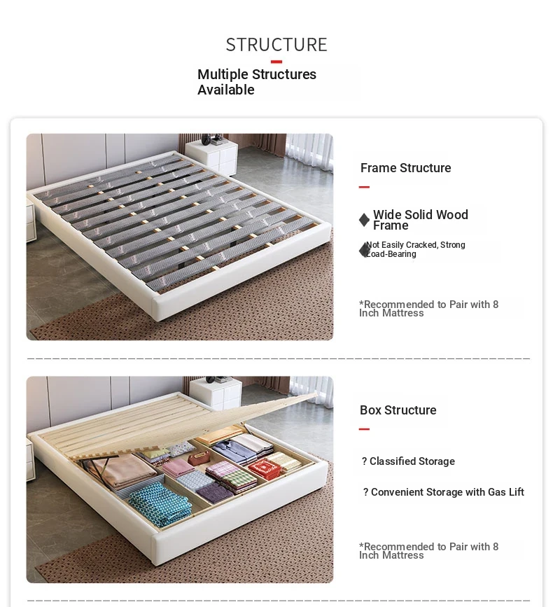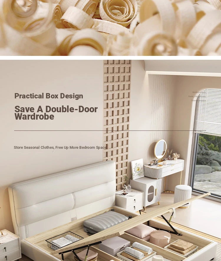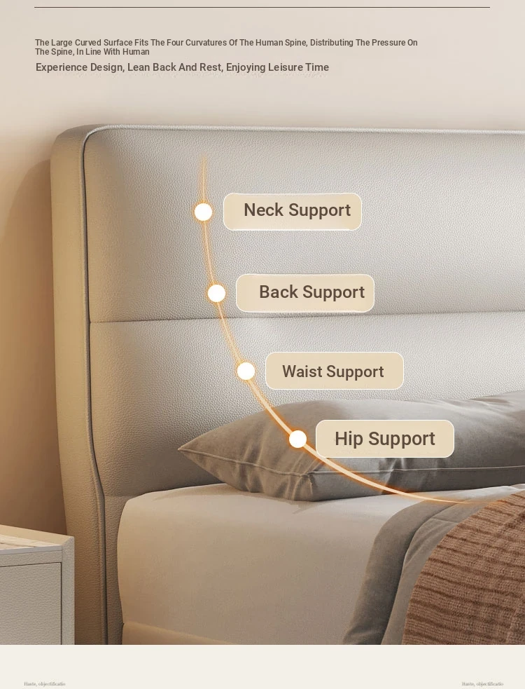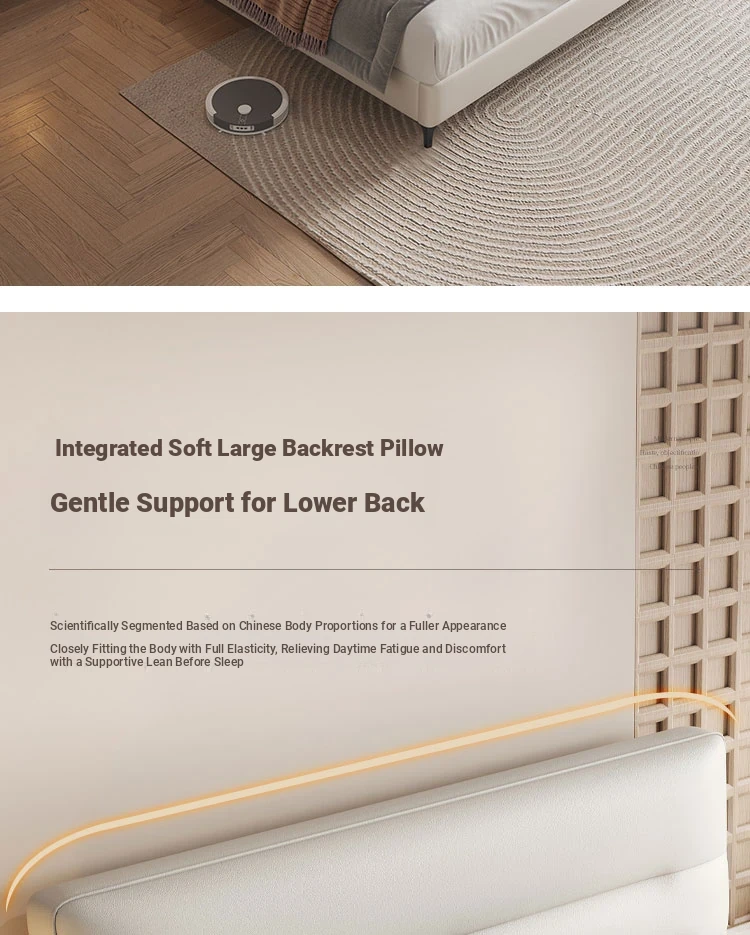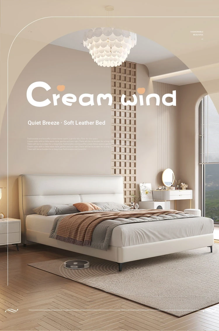 Nordic Luxury Leather Upholstered Bed - Modern Minimalist Double Bed for Master Bedroom, Premium Genuine Leather with Solid Wood and Soft Padding, Perfect for Newlyweds