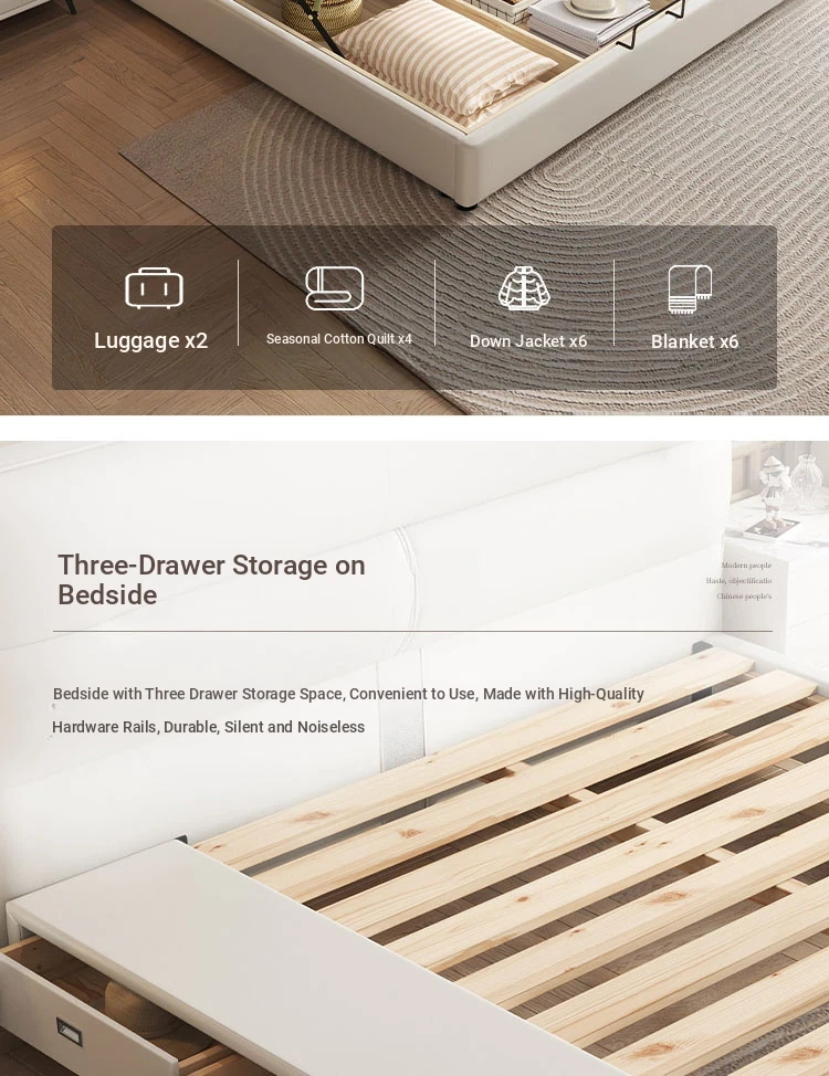 Cat scratch leather bed +360 independent pocket spring mattress +2 cabinets((Soft mute, package installation))