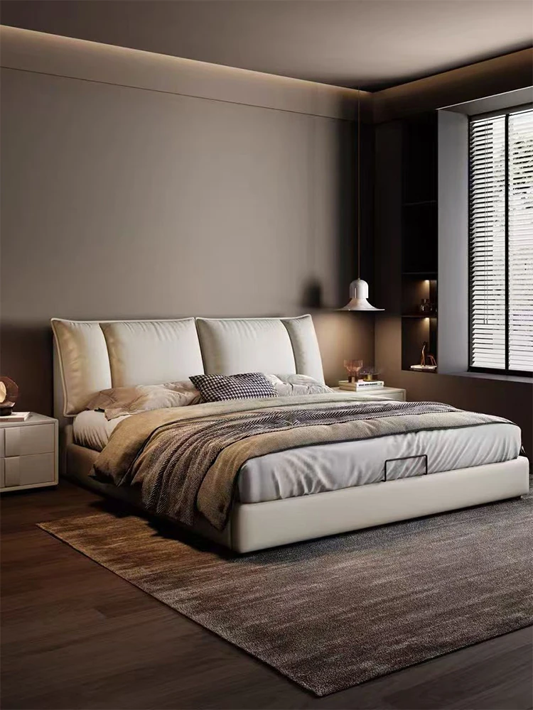 Nordic Style Luxury Upholstered Bed for Master Bedroom - Modern Minimalist Double Bed with Soft Leather Design, Perfect for a Chic and Elegant Atmosphere.