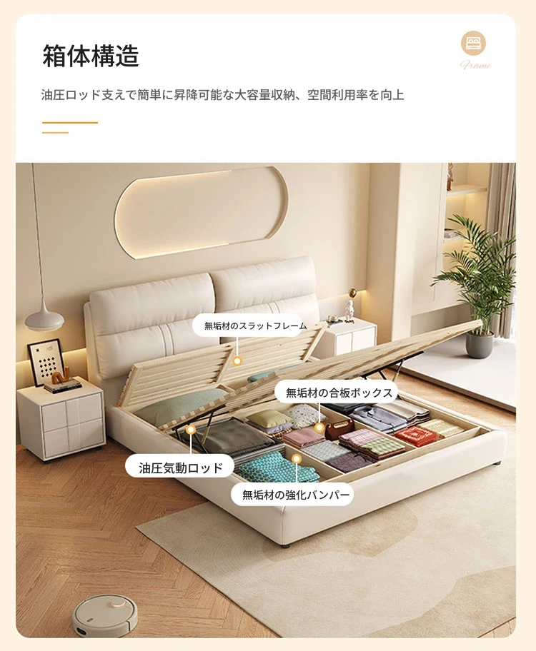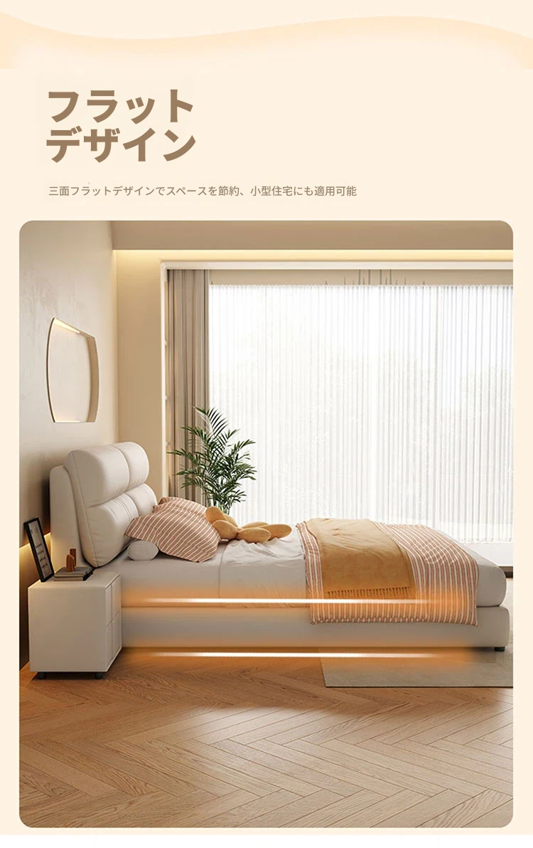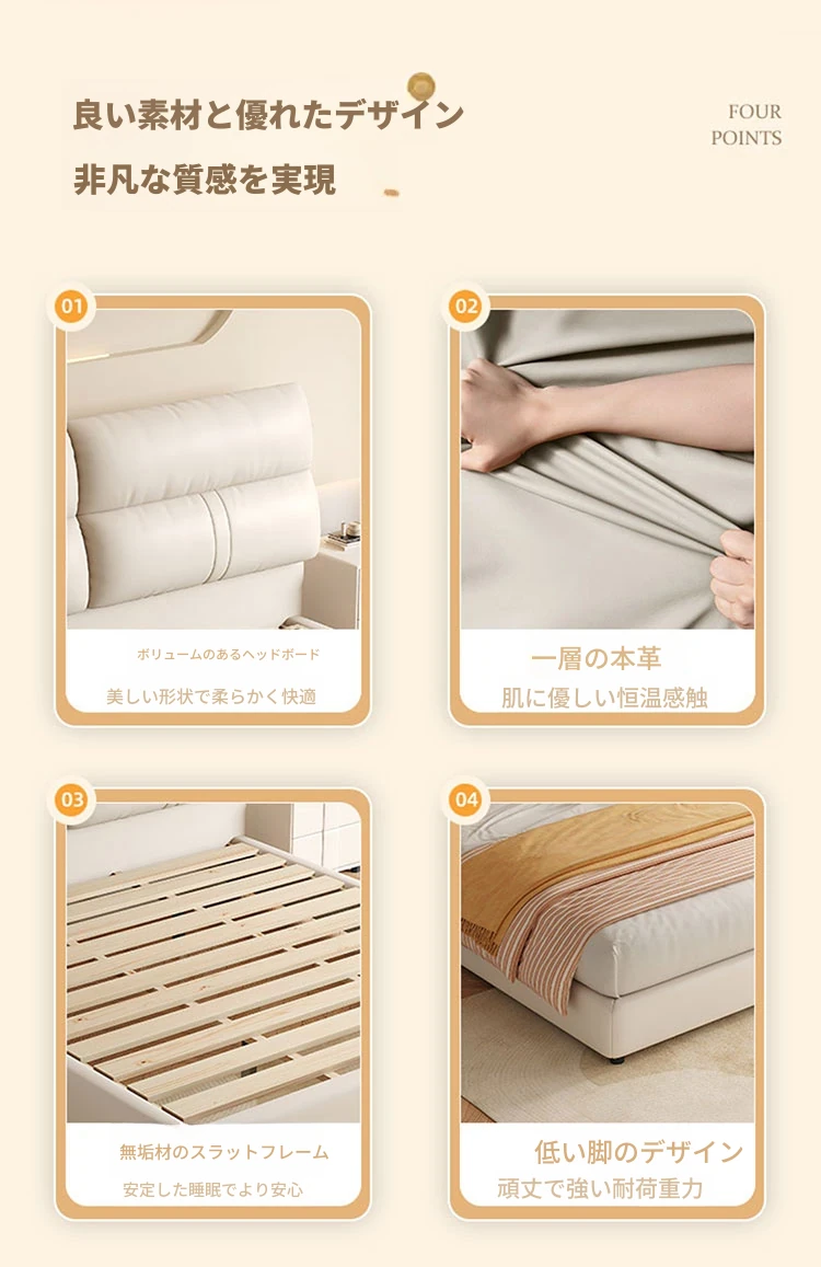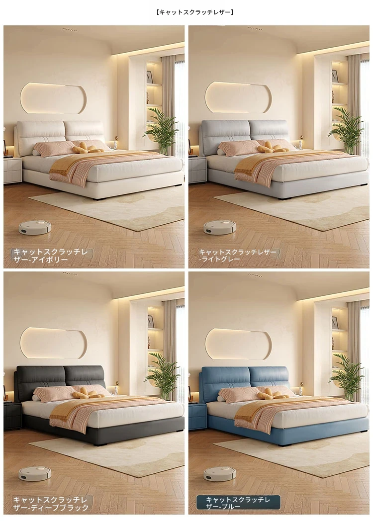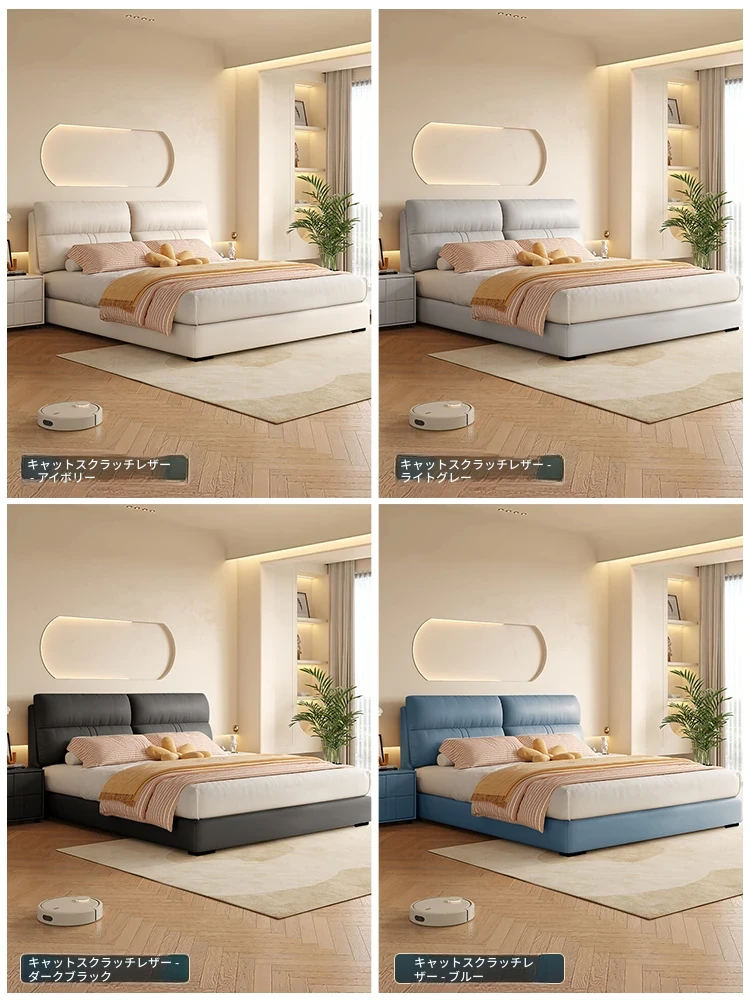 猫抓皮床+1キャビネット (無垢材の静音ベッドボード)