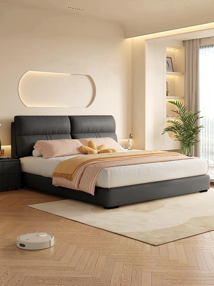 2025年最新フレンチクリームスタイルのダブルベッド - モダンでシンプルなデザイン、豪華なソフトパッケージ、主寝室にぴったり!180cmの広々としたサイズで、理想の婚礼ベッドを実現します。
