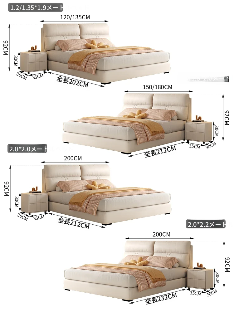 猫抓皮床+9分区5Dラテックスマットレス+2キャビネット (柔らかさと硬さが適度、取り付け込み)