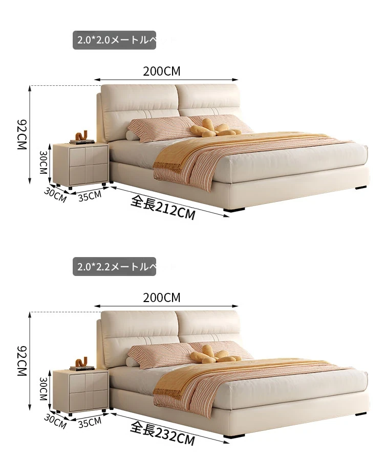 猫抓皮床+7分区ラテックスマットレス+2キャビネット (柔らかさと硬さが適度、取り付け込み)