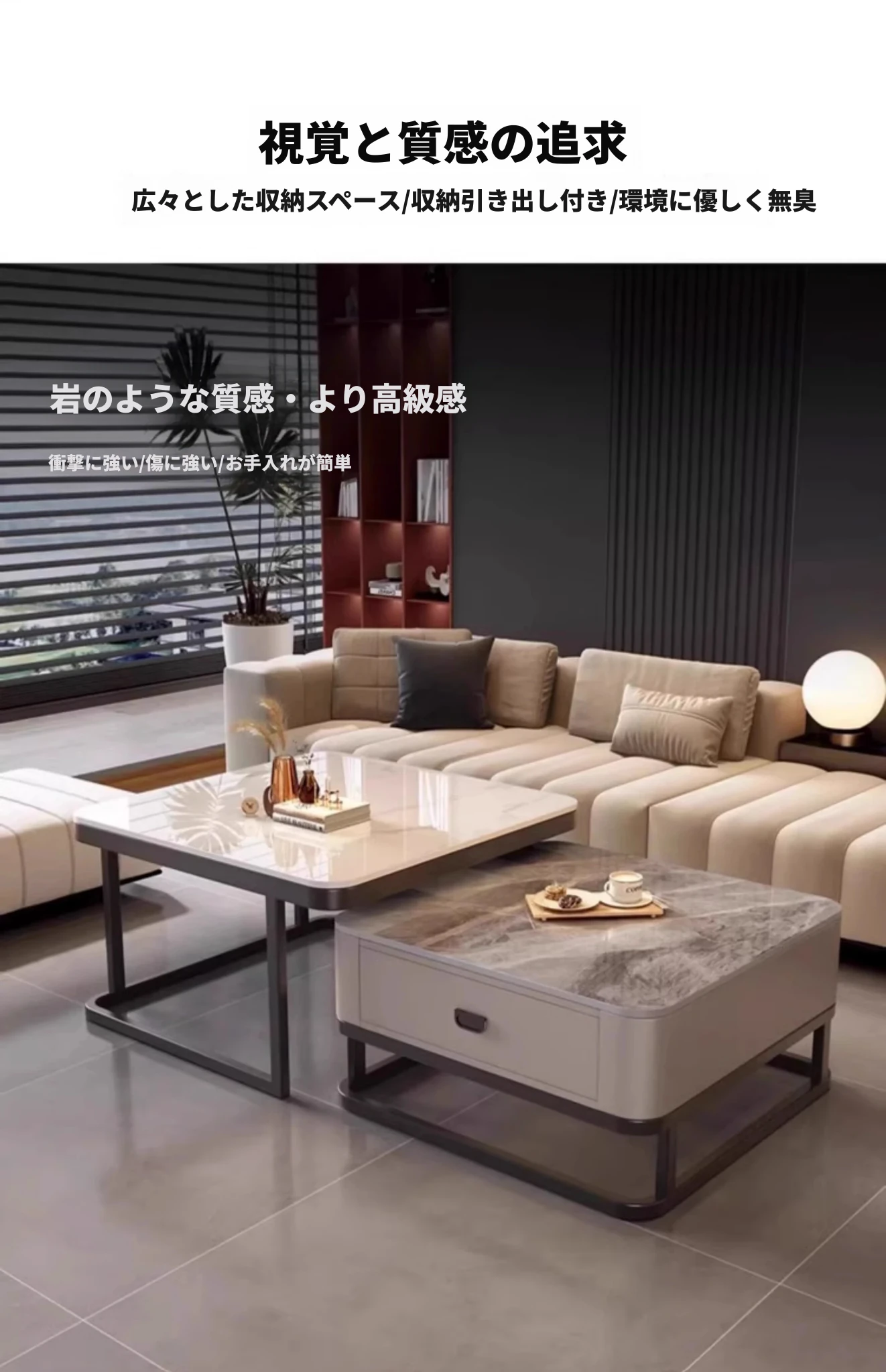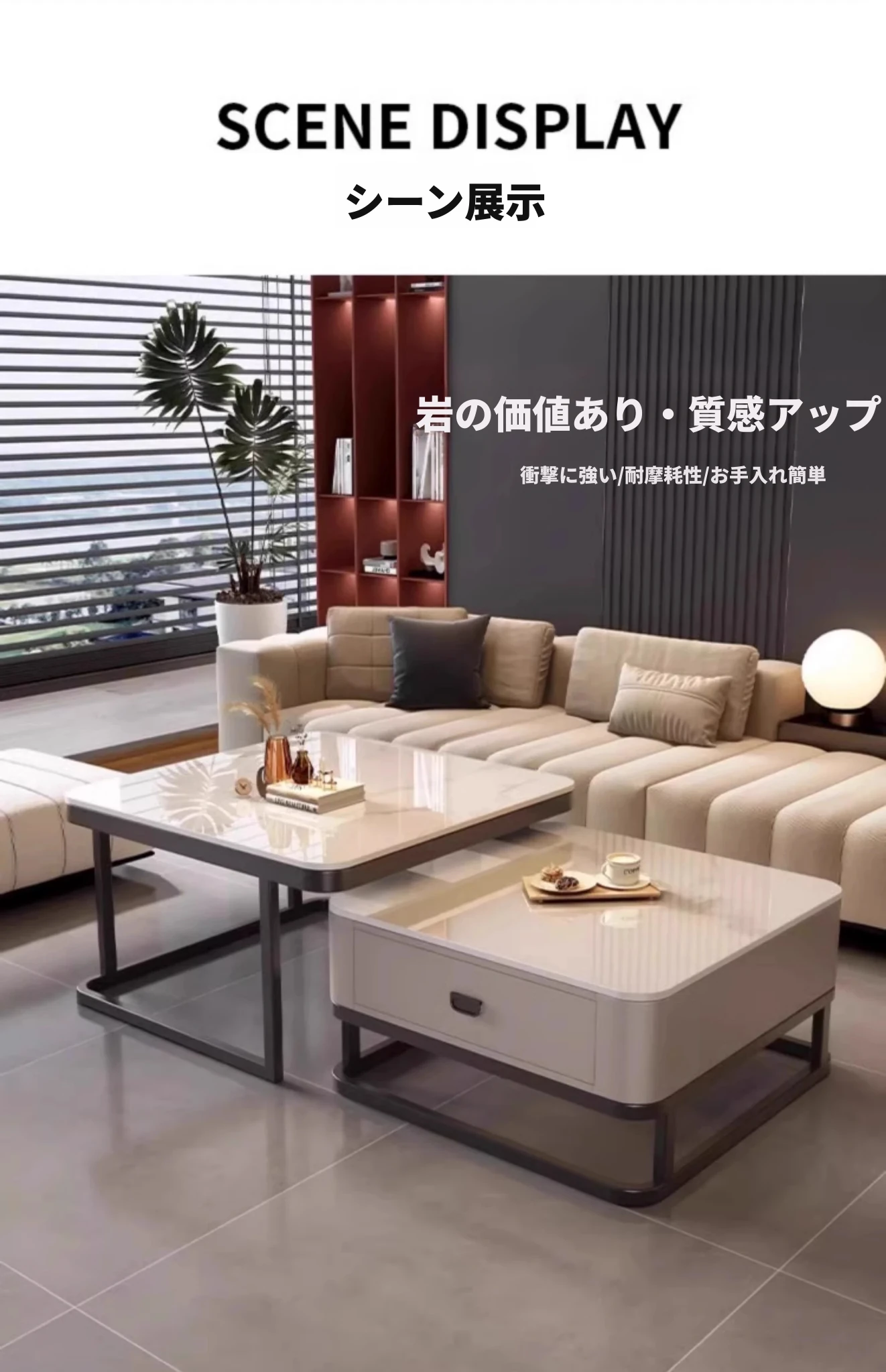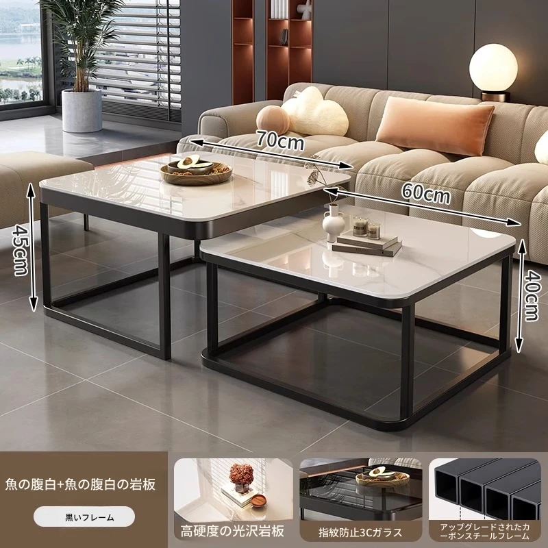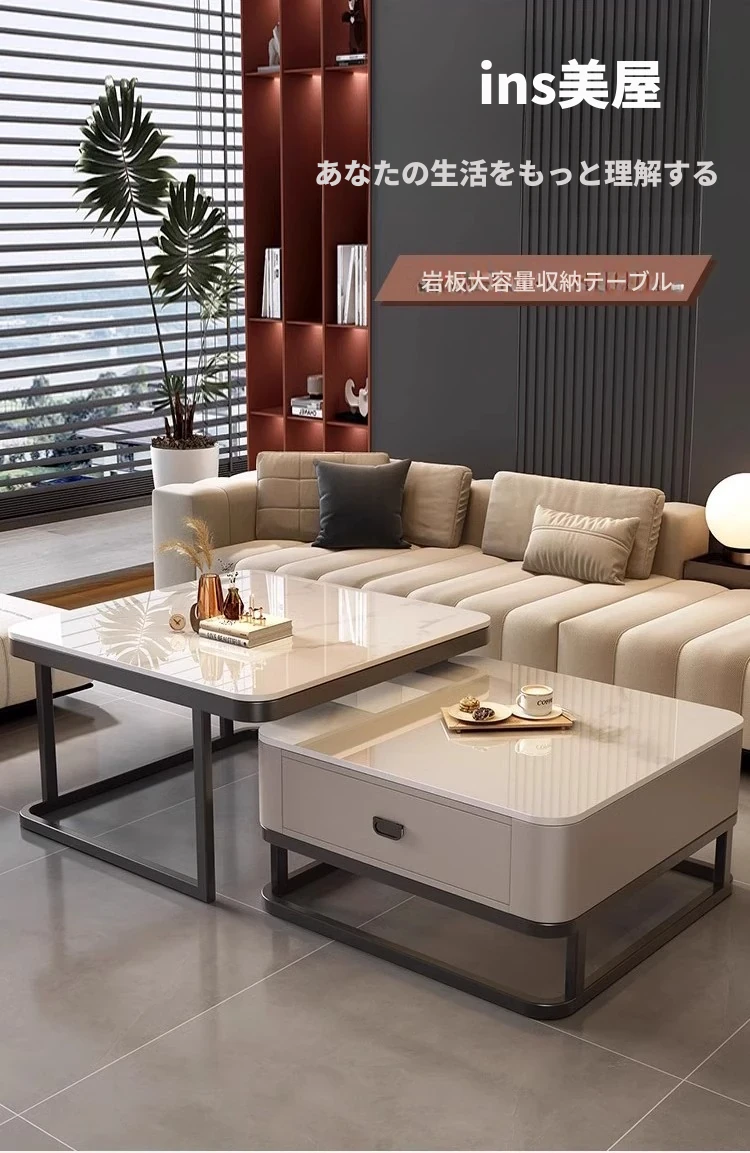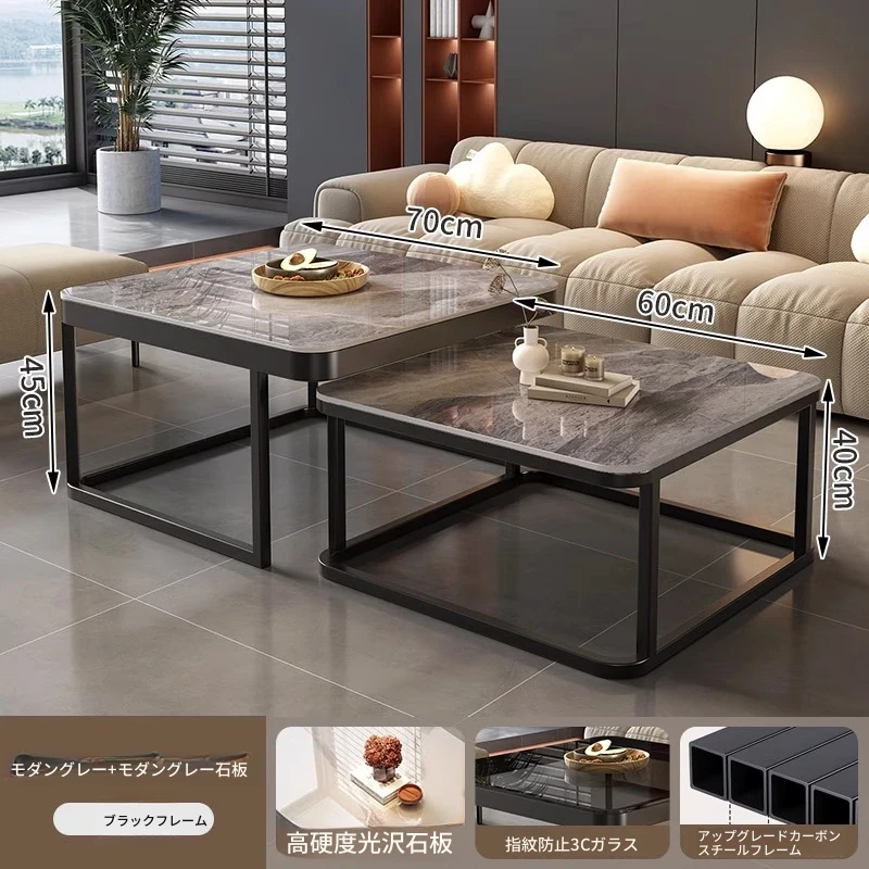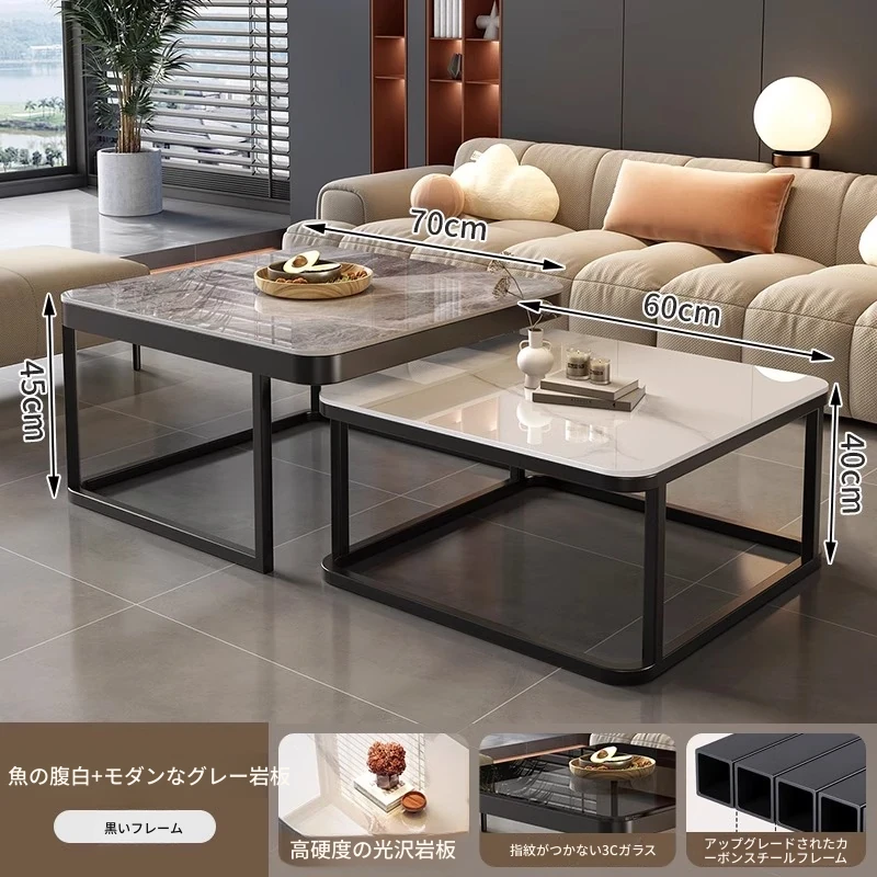 2025年新作!洗練されたミニマリストデザインの岩板コーヒーテーブル - 小型住宅に最適な高級感あふれる四角形テーブル。リビングルームをスタイリッシュに演出します!