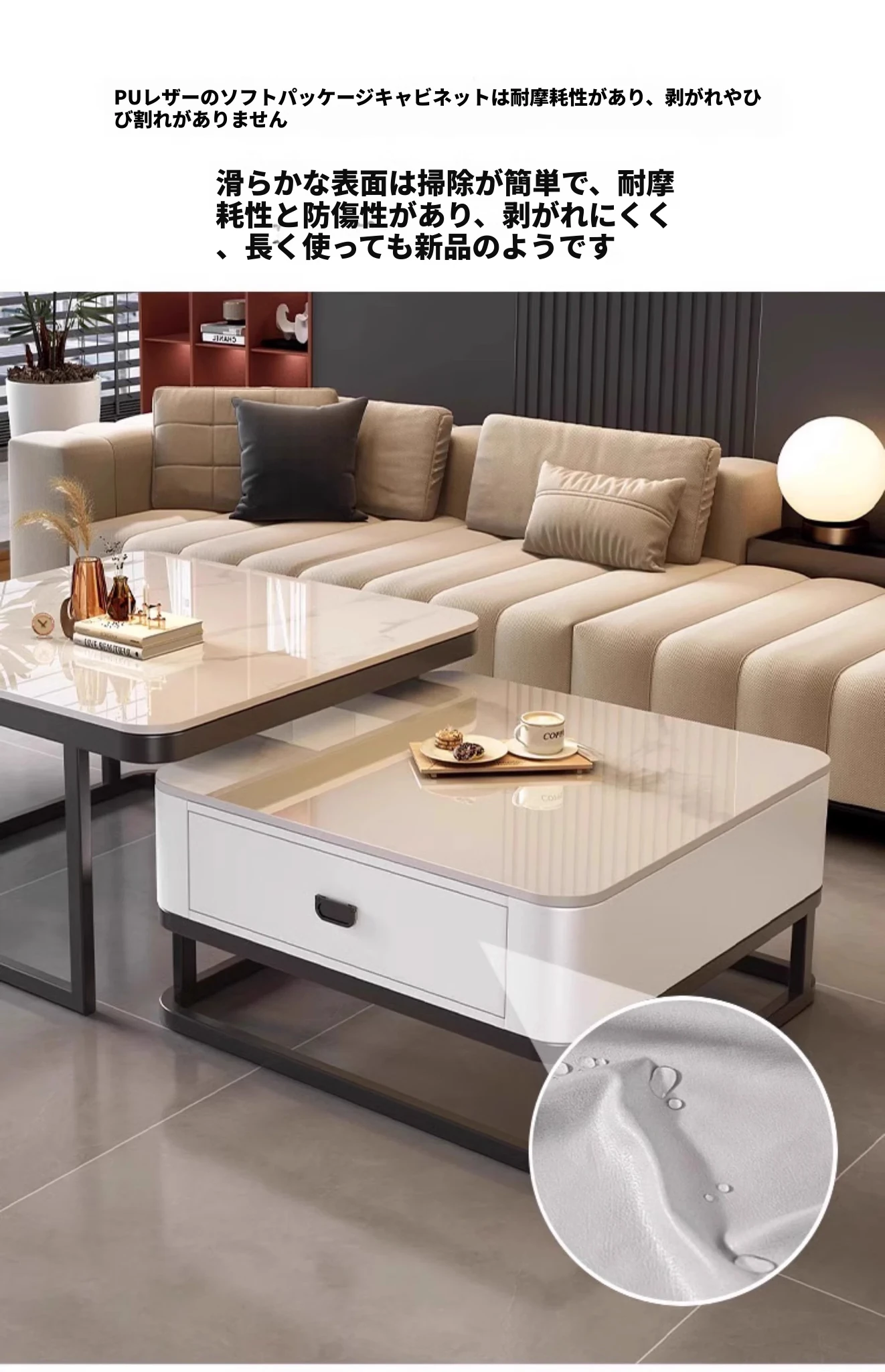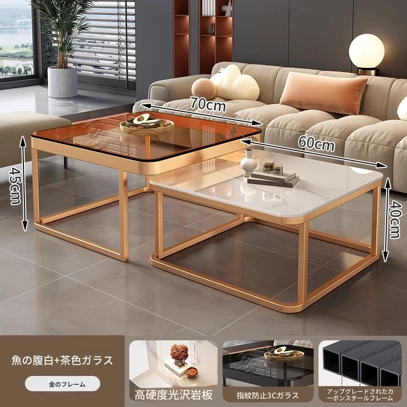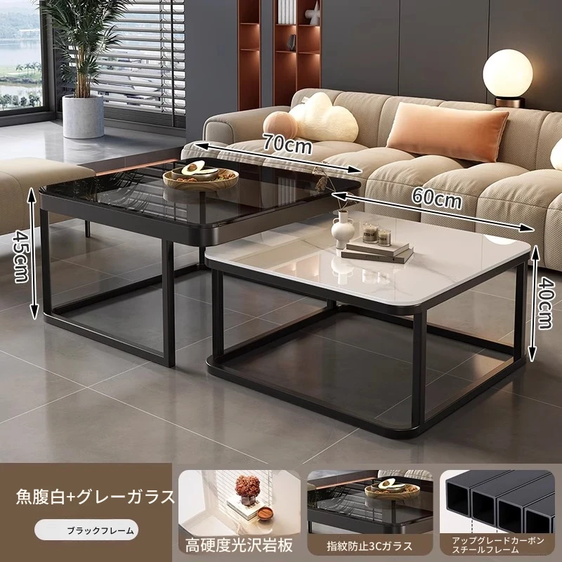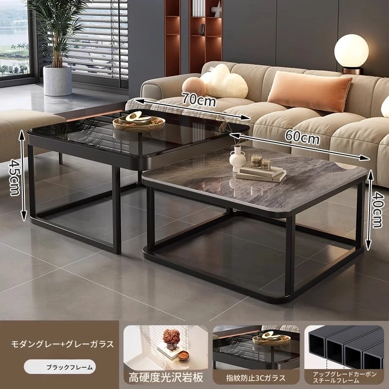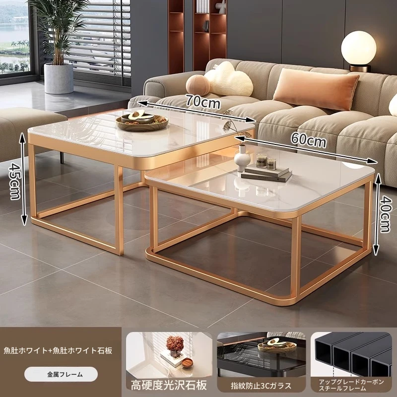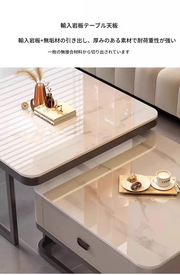 2025年新作!洗練されたミニマリストデザインの岩板コーヒーテーブル - 小型住宅に最適な高級感あふれる四角形テーブル。リビングルームをスタイリッシュに演出します!