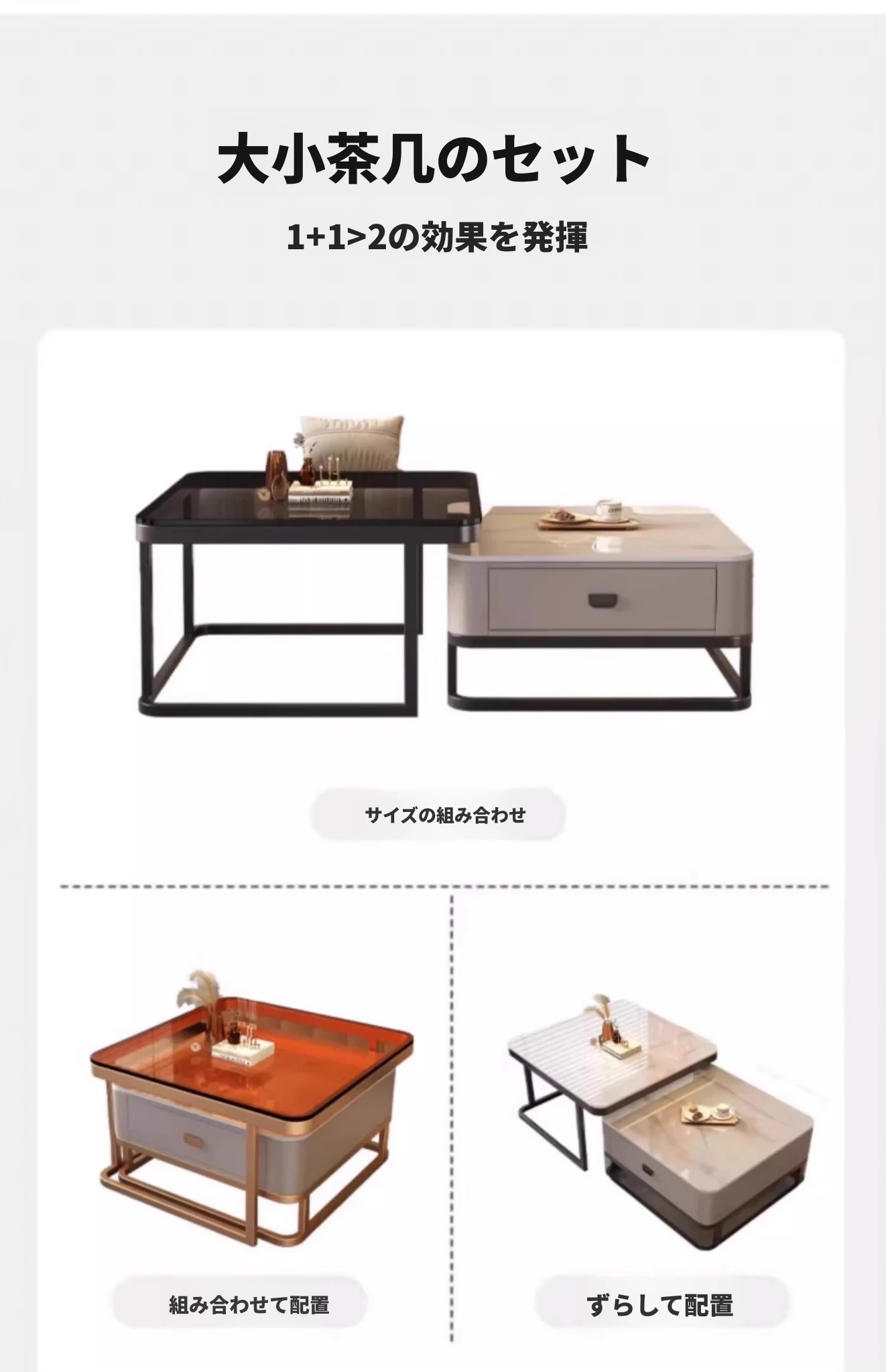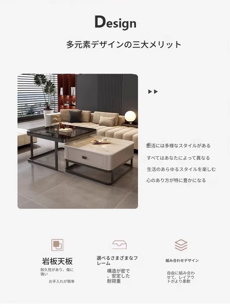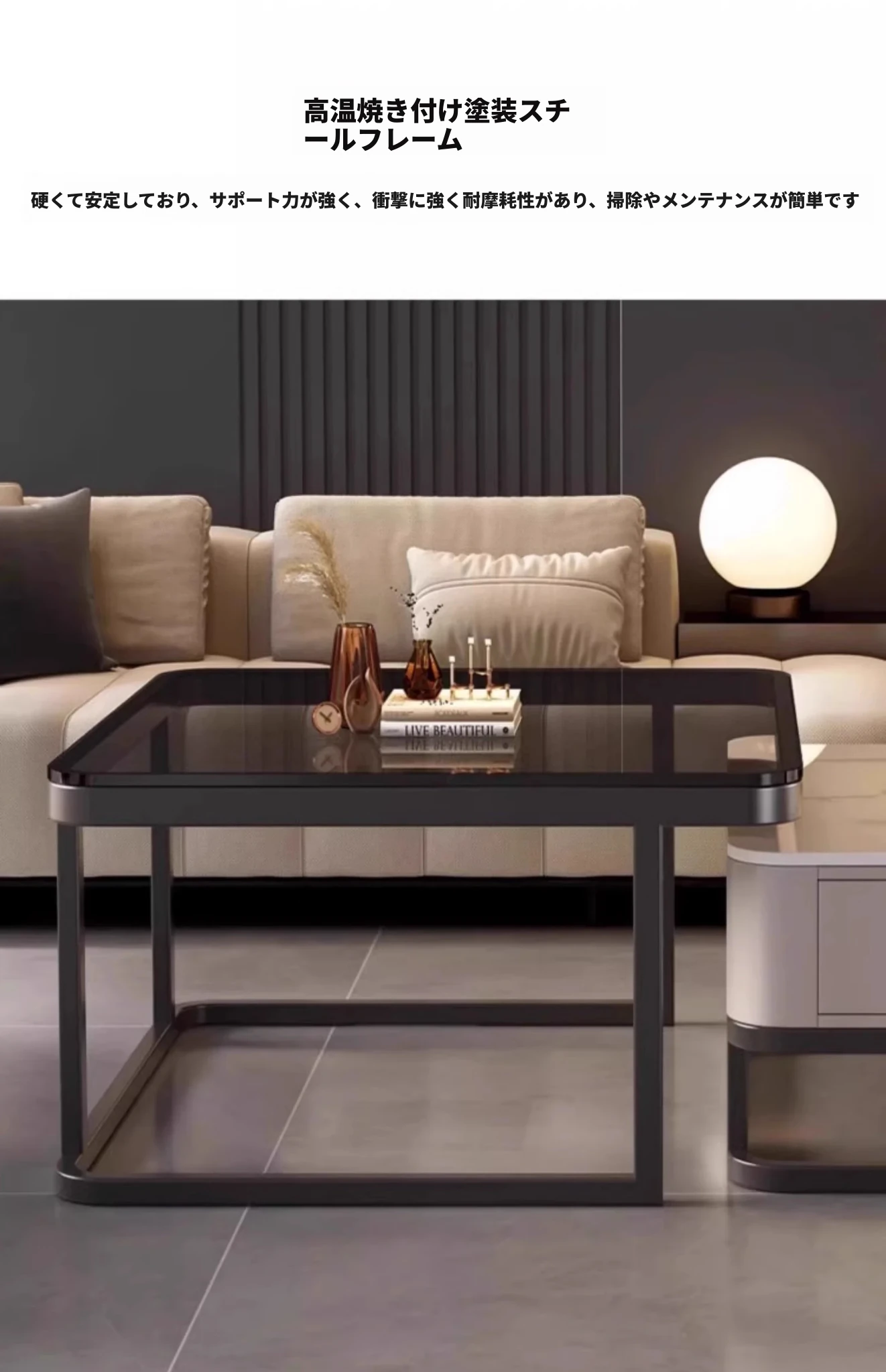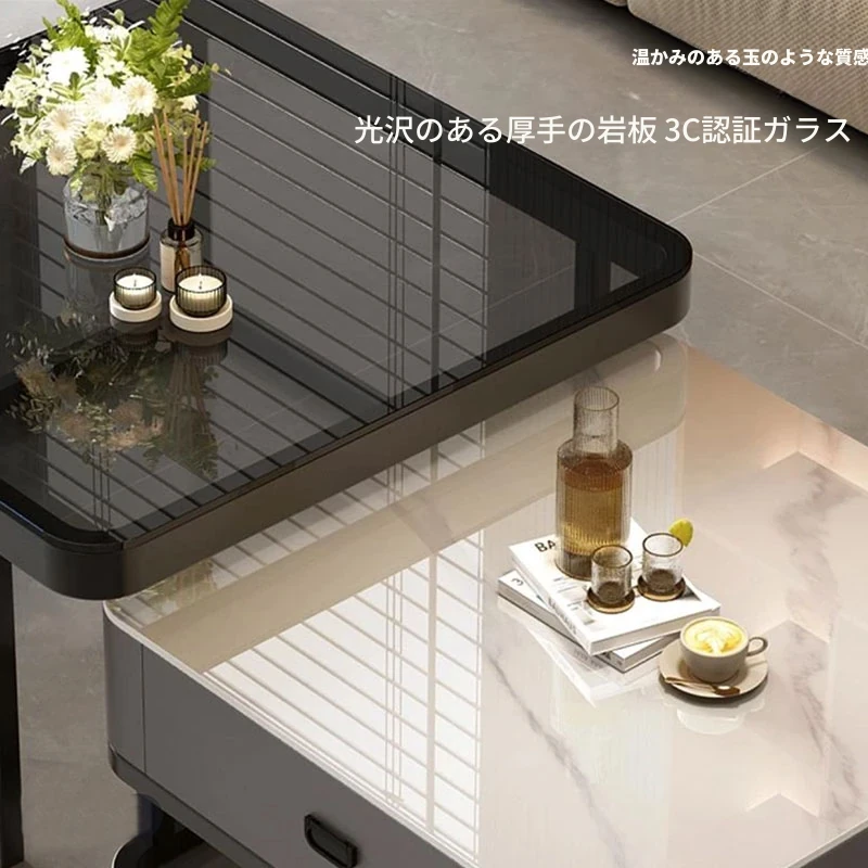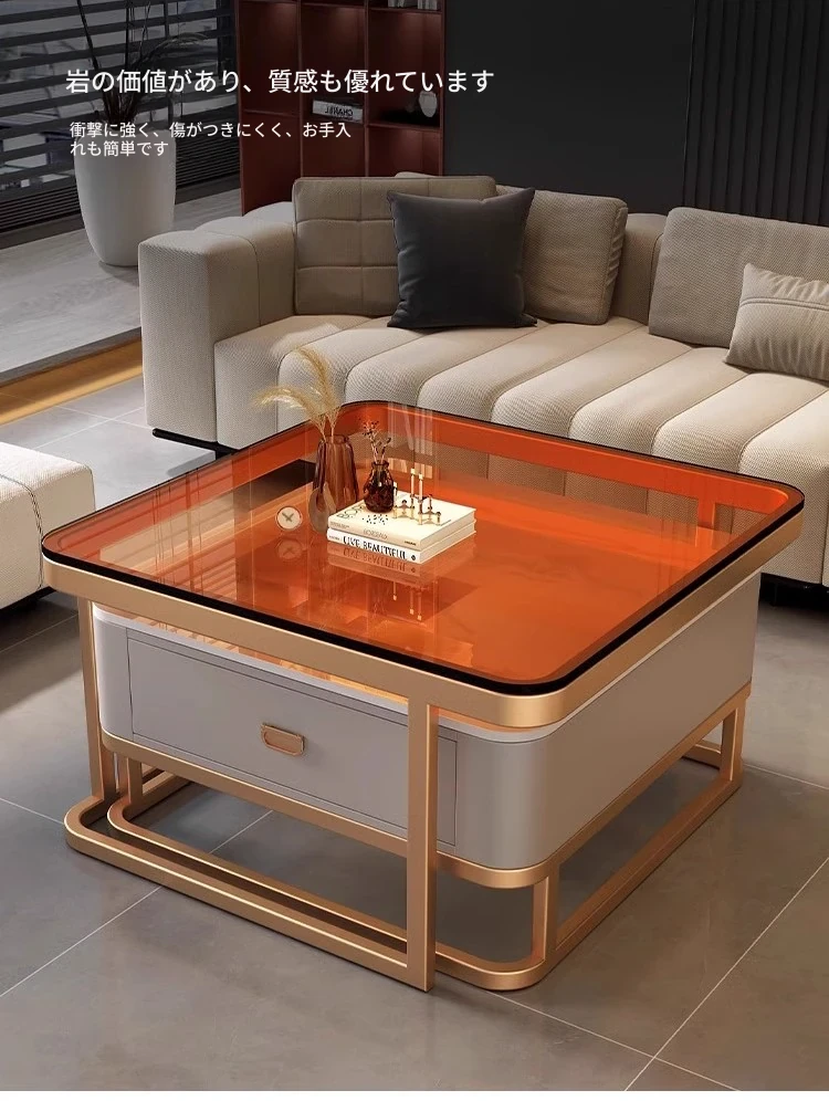 2025年新作!洗練されたミニマリストデザインの岩板コーヒーテーブル - 小型住宅に最適な高級感あふれる四角形テーブル。リビングルームをスタイリッシュに演出します!