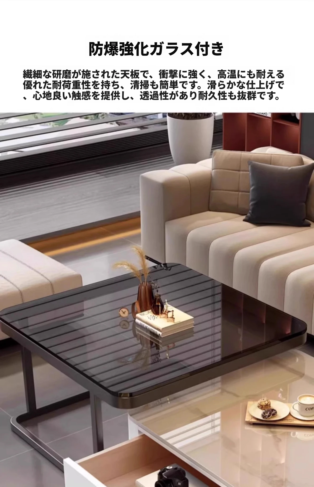 無抽金架(60光沢スノーホワイト+70強化ティーガラス)