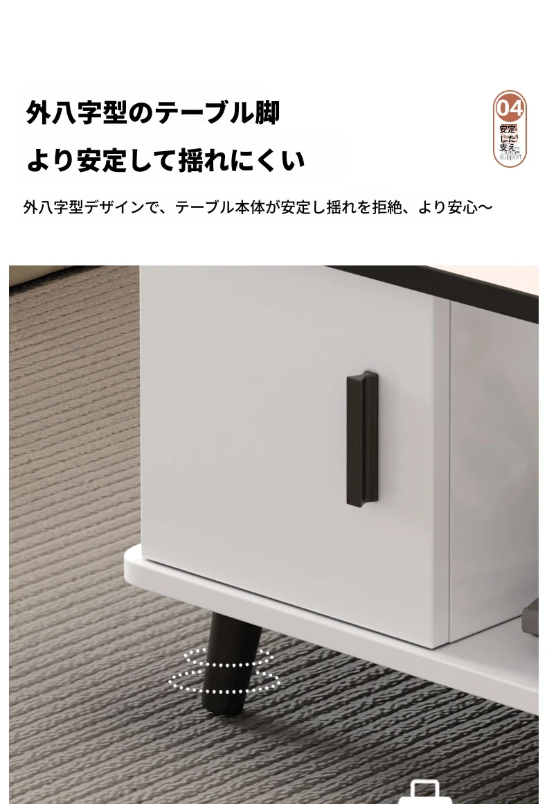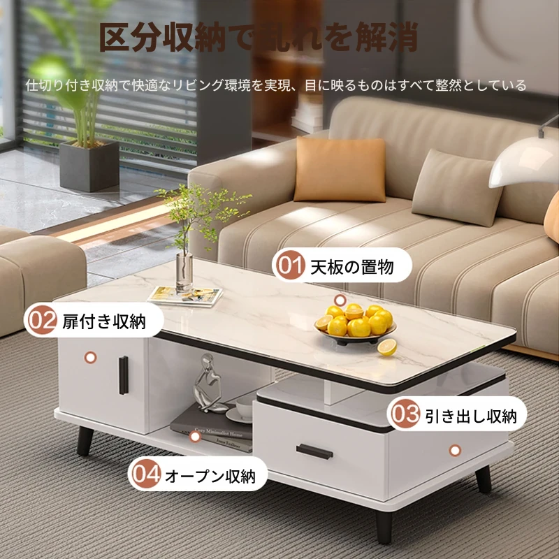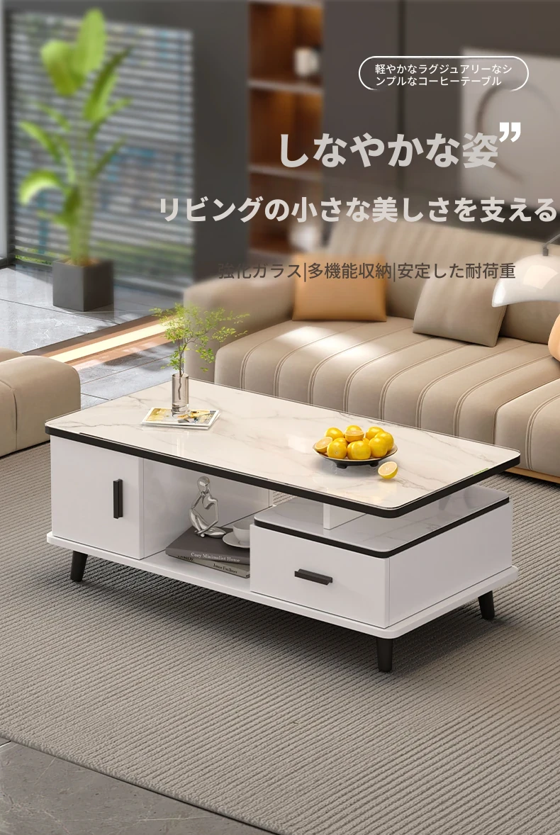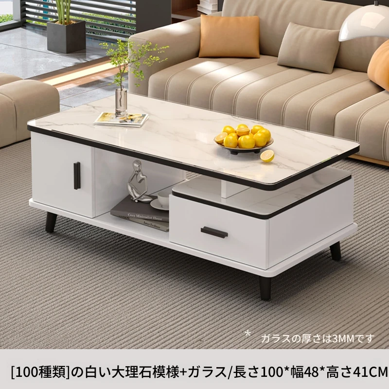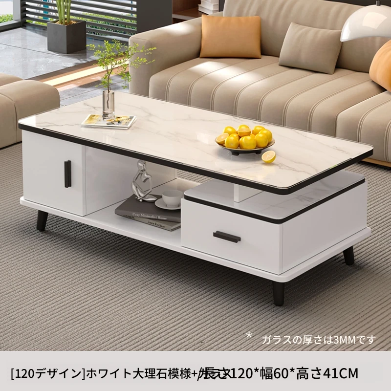 【一抽一柜】100ホワイト大理石色+ガラス 取り付け込み
