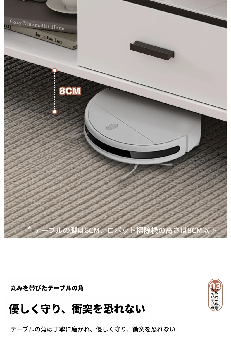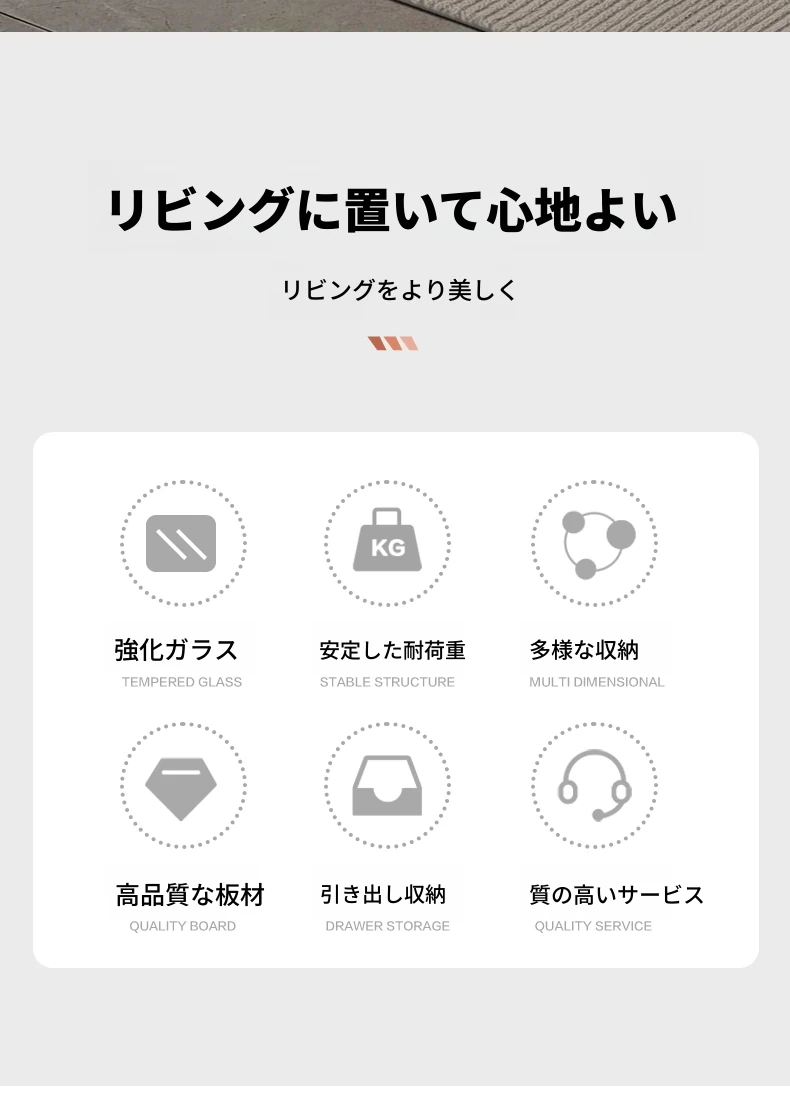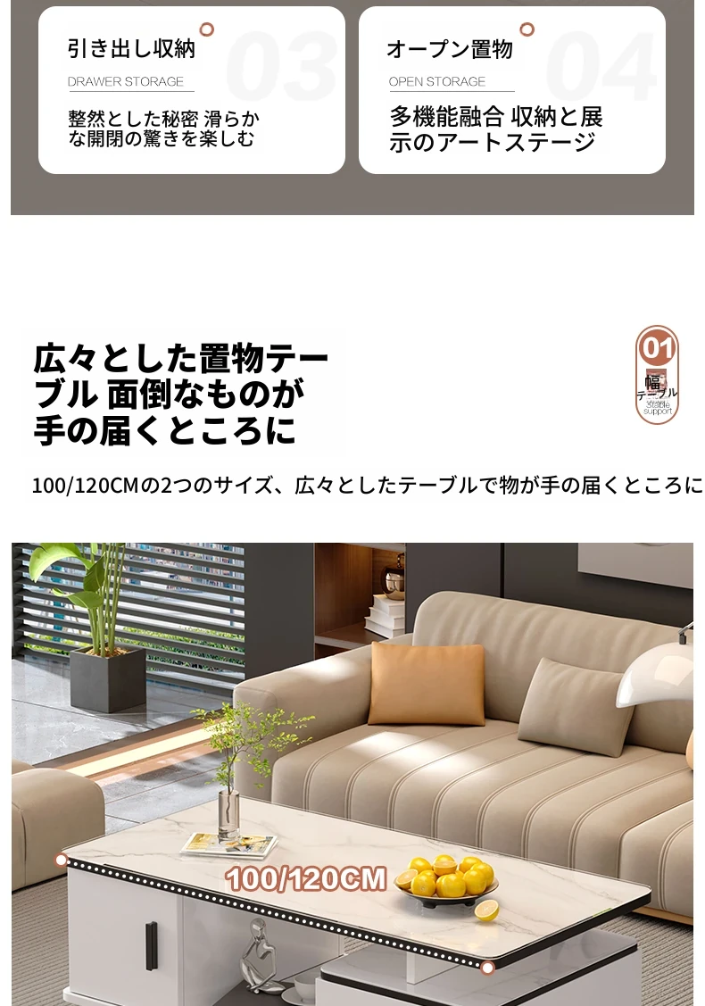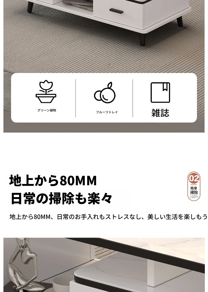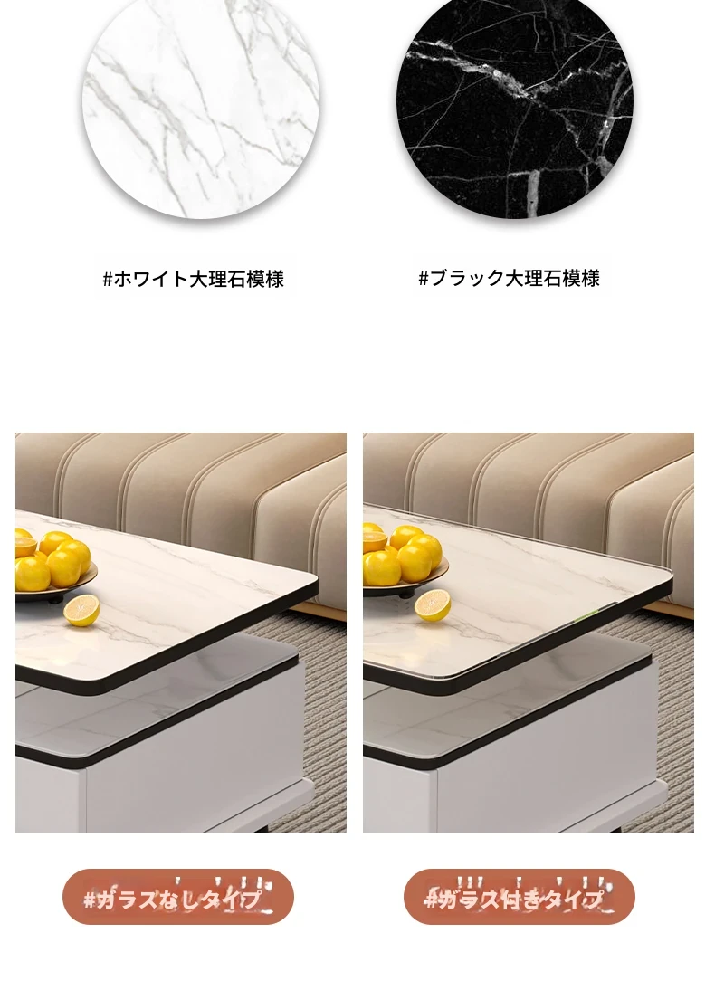 【一抽一柜】100ホワイト大理石色+ガラス 取り付け込み