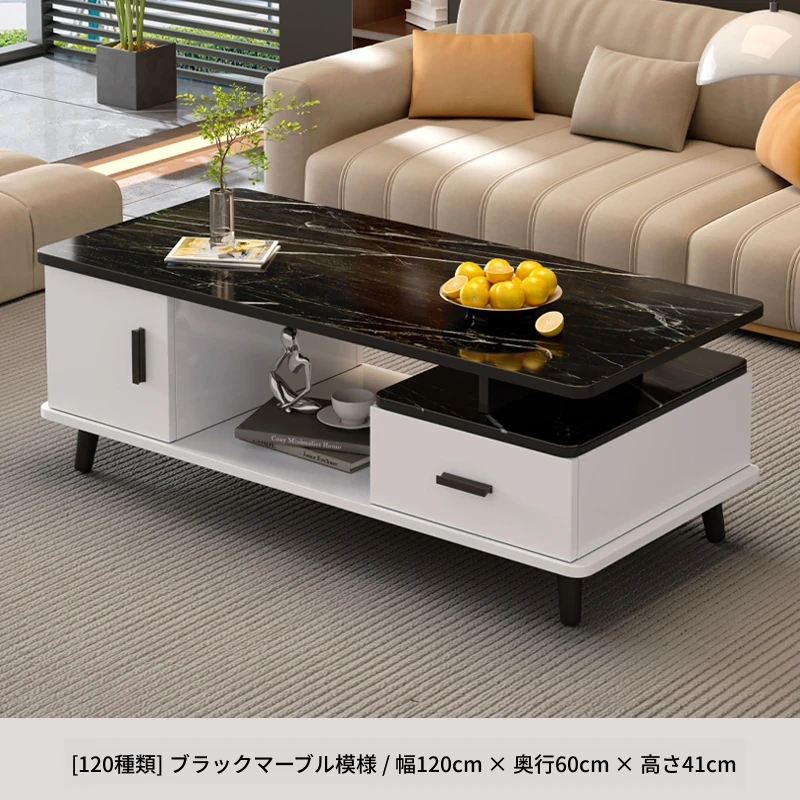 【一抽一柜】120ブラック大理石色 取り付け込み